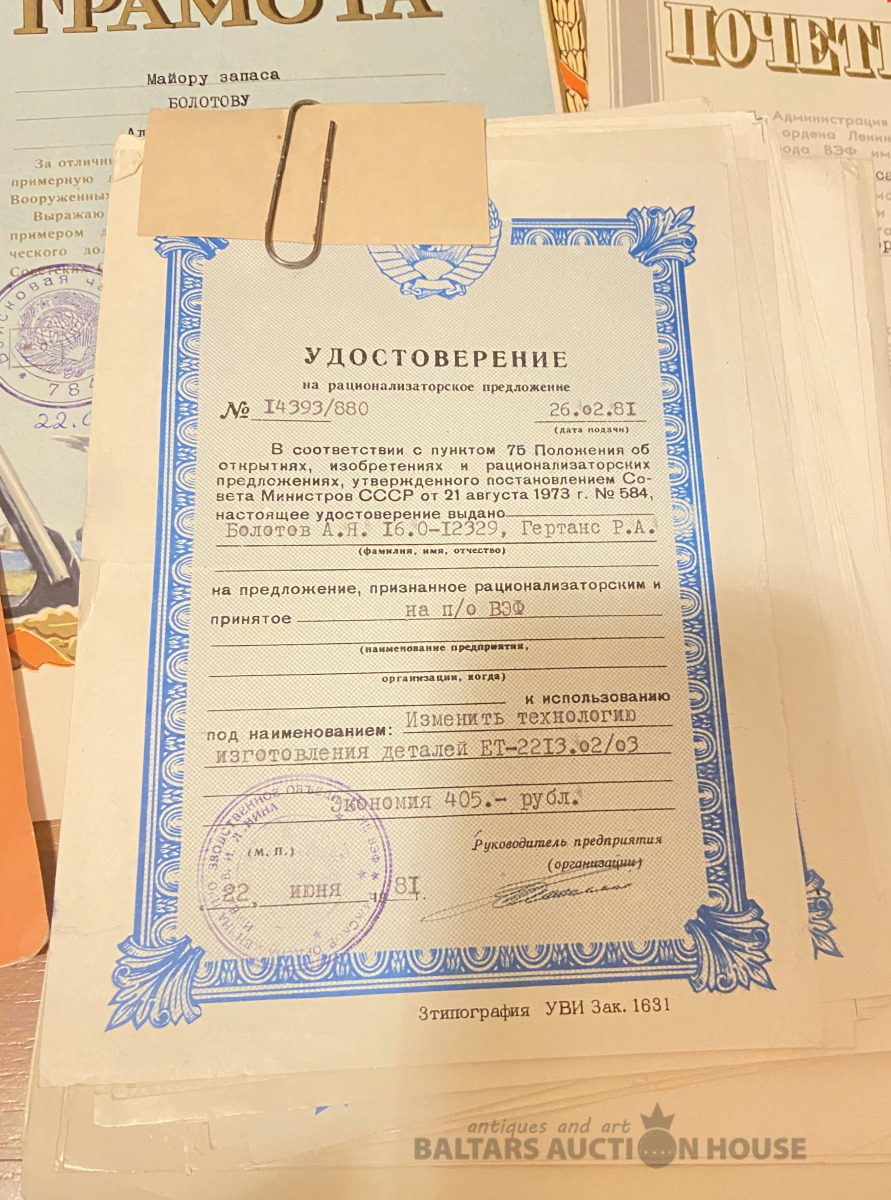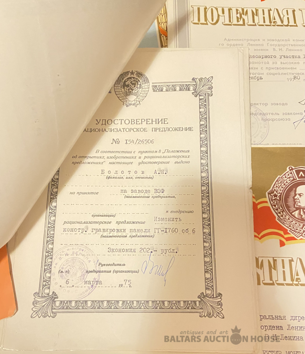 Goda raksti un sertifikāti par racionalizācijas priekšlikumiem LPSR