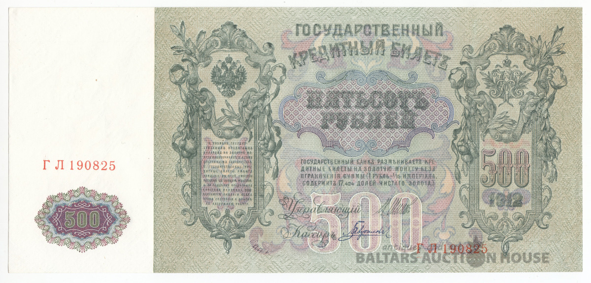 Krievija/ Russia, 500 Rubļis 1912, Šipov/Gavrilov, UNC