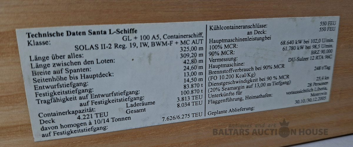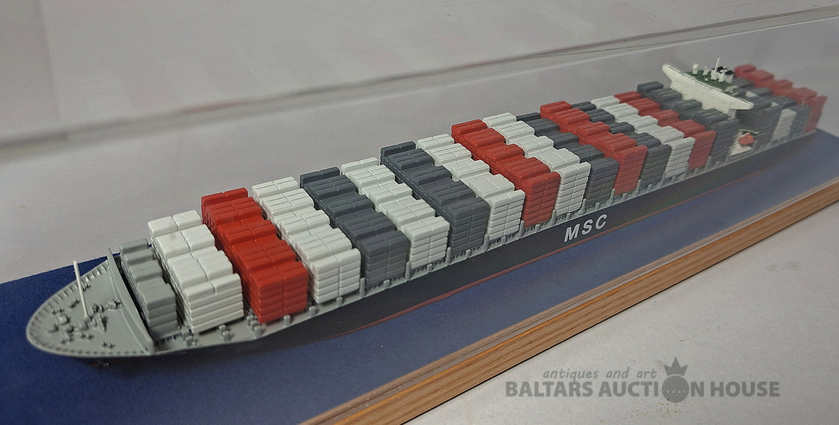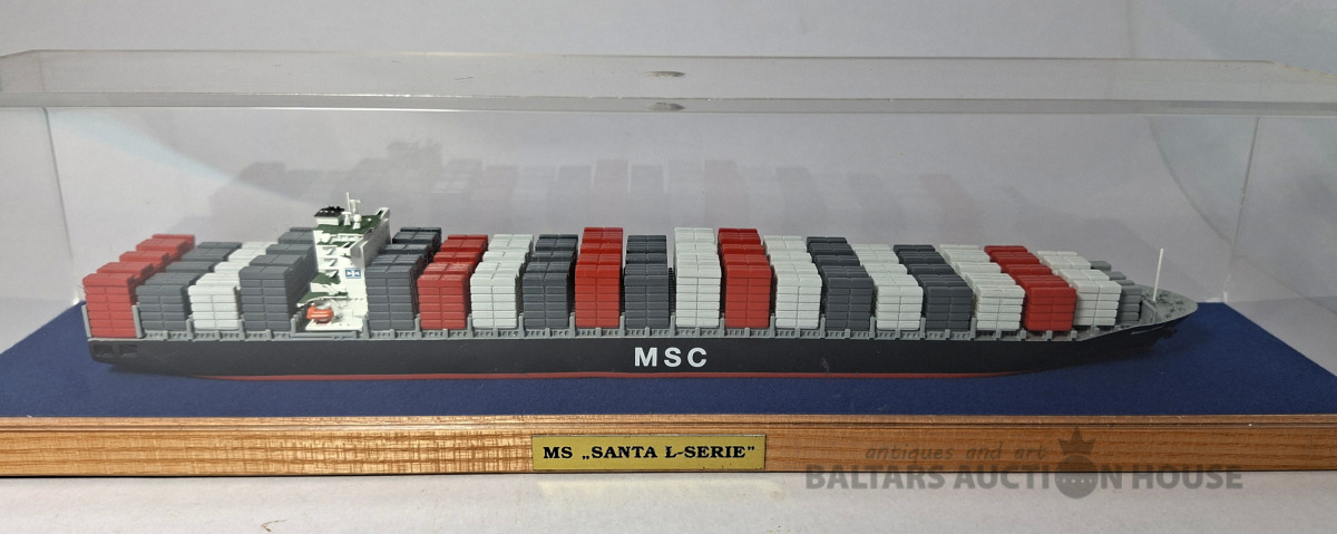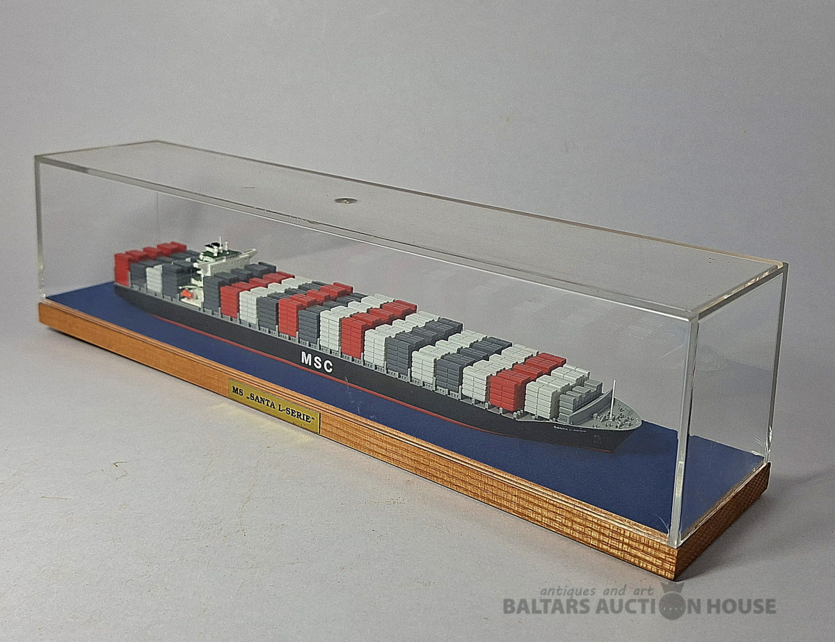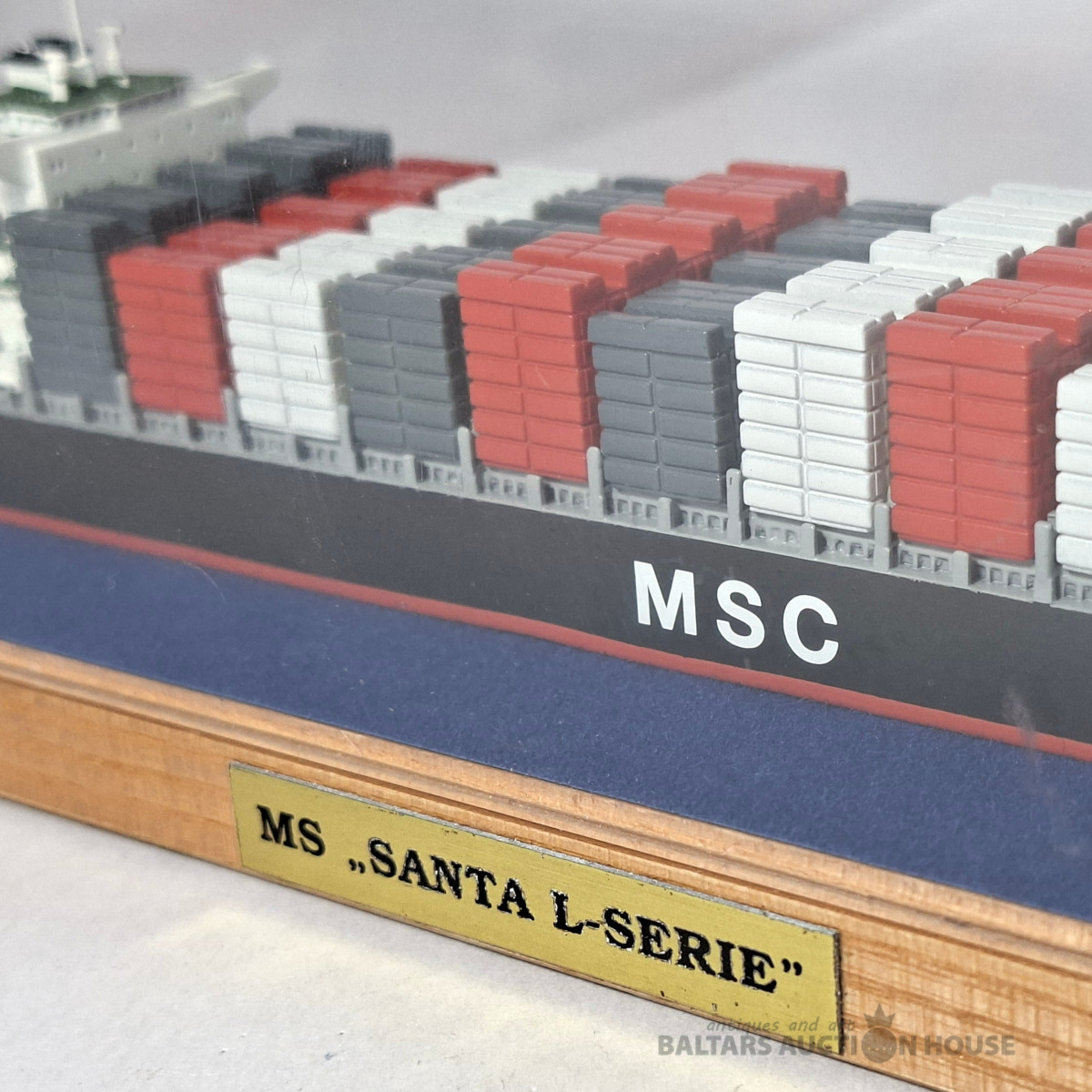 Būvniecības kuģniecības kompānija - MSC - MS "Santa L-Series" konteinerkuģis. Garums 32 cm. Augstums 8 cm.