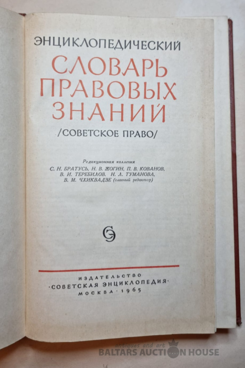 "Энциклопедический словарь правовых знаний, (Советское право)", 1965. год.