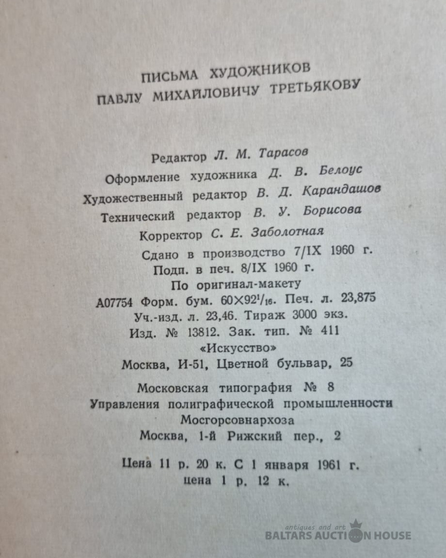 "Писма художников Павлу Михайлович Третьякову 1856-1869", 1960. год.