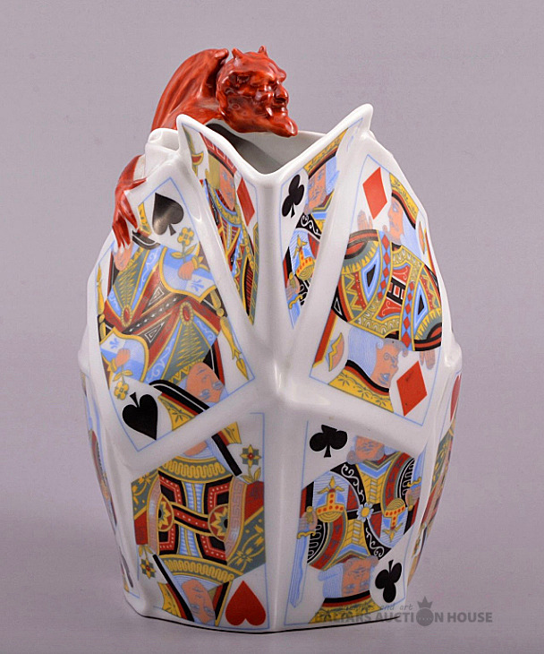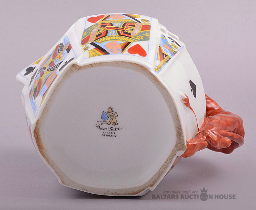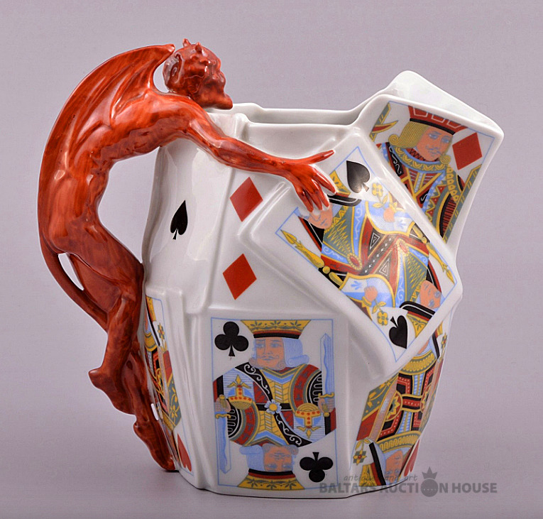 Porcelāna krūze "Velns un kārtis". 18,8 cm Lieliskā stāvoklī. Lielisks papildinājums jūsu kolekcijai. Lieliska dāvana kāršu spēlētājam.