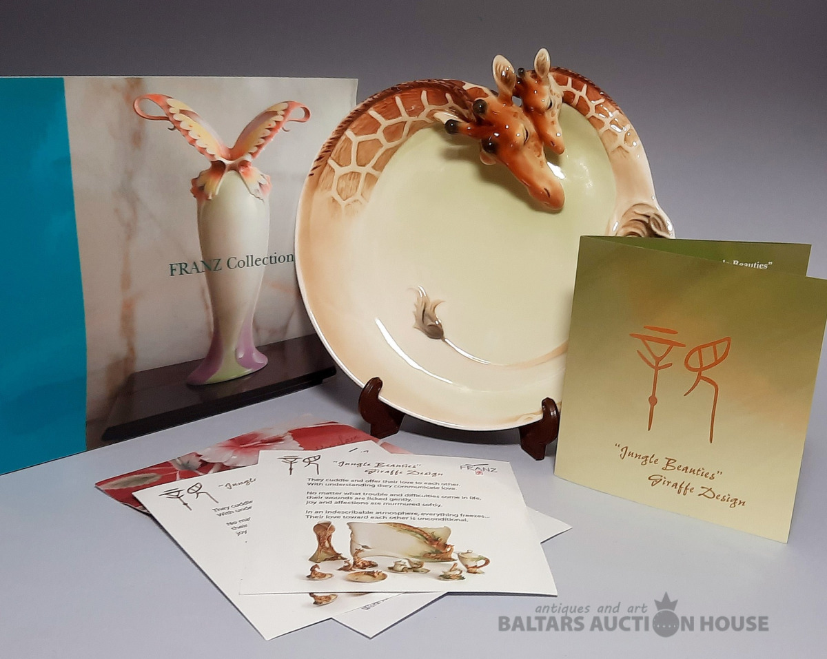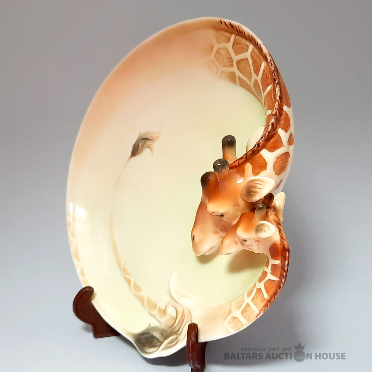 Franz kolekcijas porcelāna šķīvis Franz porcelāna kūkas šķīvis "Žirafe" "Māte un žirafes mazulis" Franz Porcellana Giraffa kūkas šķīvis "Madrese un bērns žirafe" Kaste iekļauta. Ir nolietojuma pazīmes. FZ00540