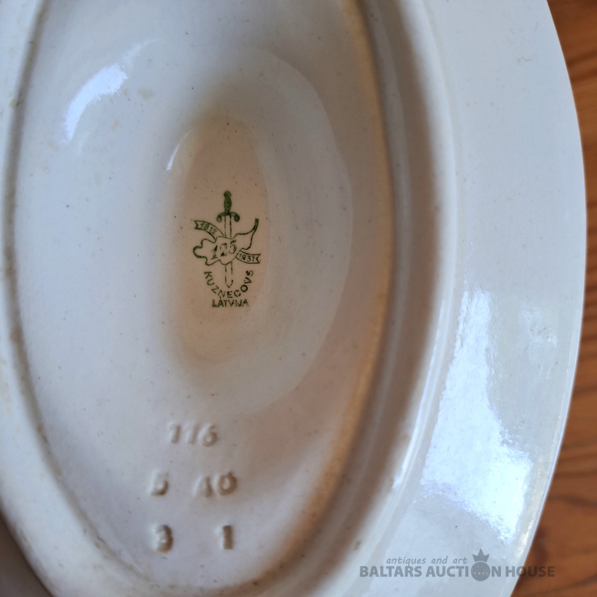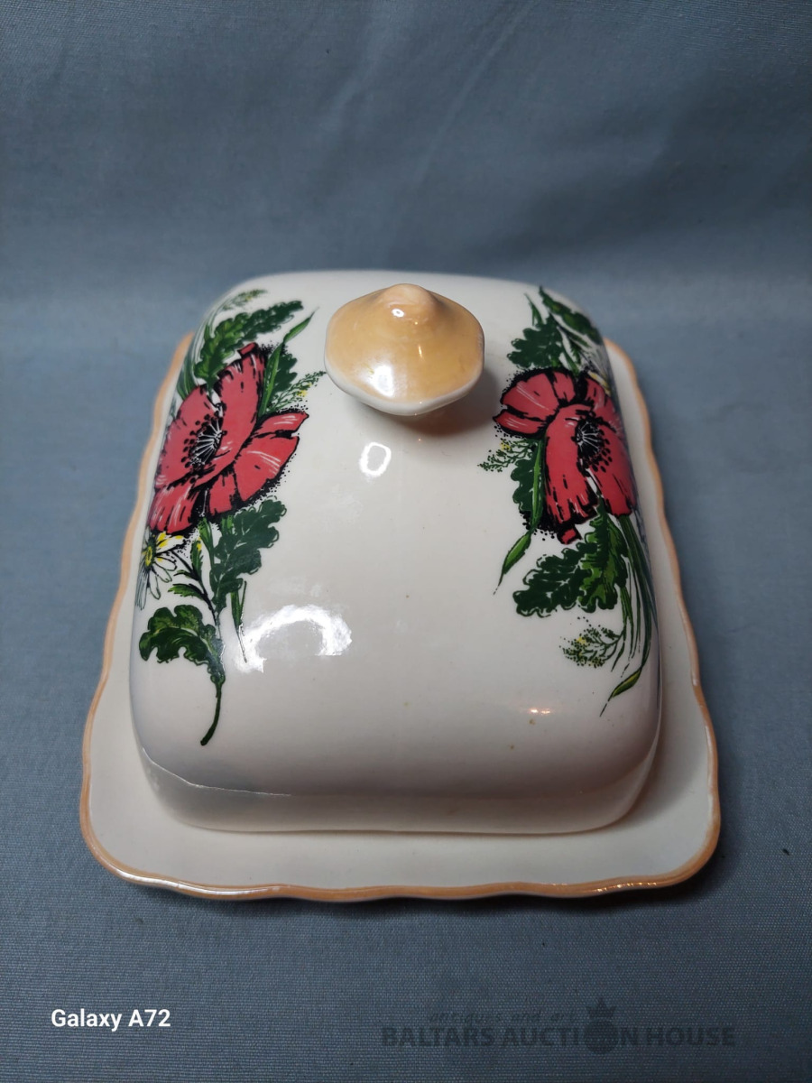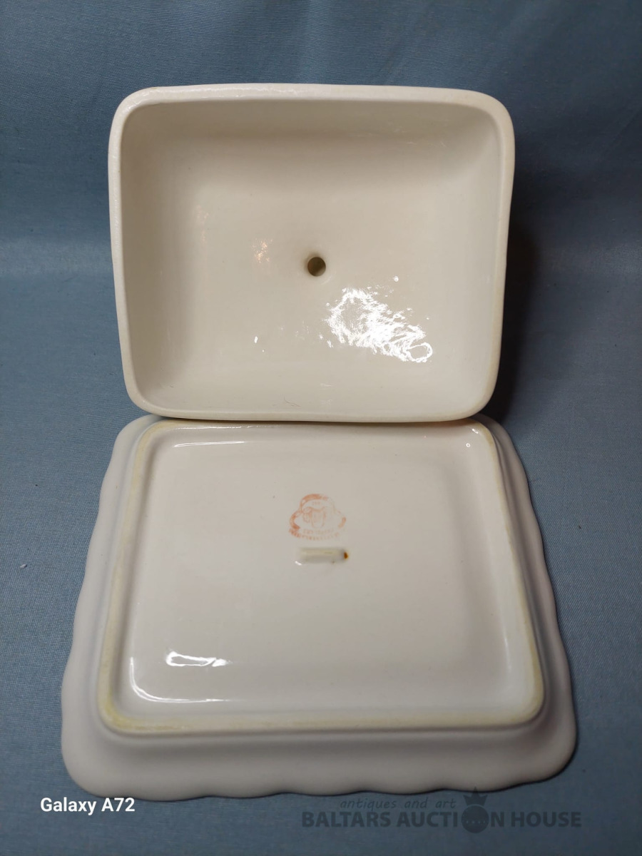 Rīgas porcelāns. Sviesta trauks ar magonēm., Rets gleznojums.