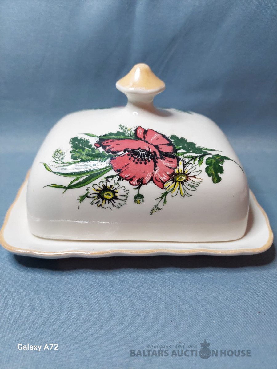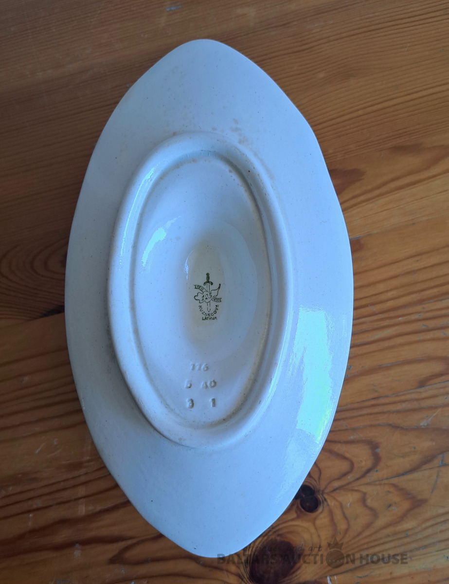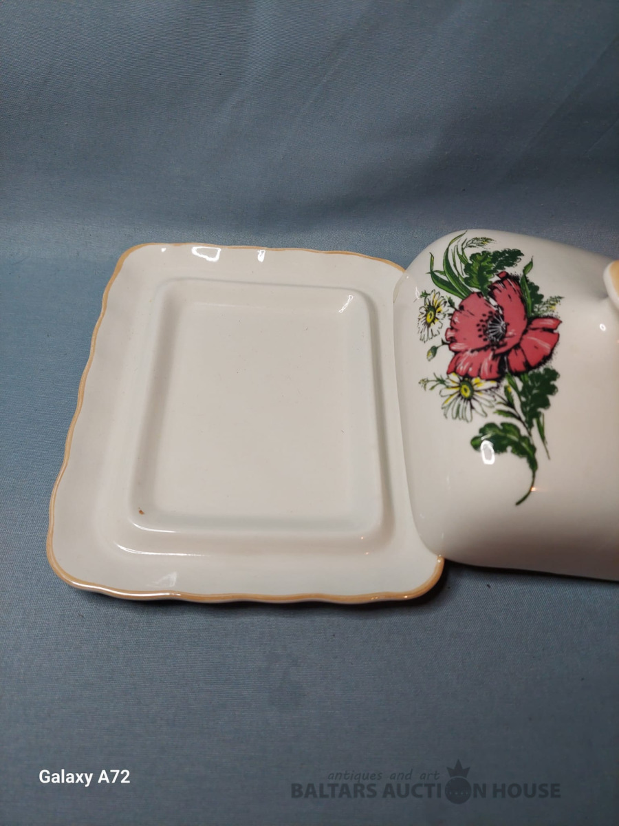 Rīgas porcelāns. Sviesta trauks ar magonēm., Rets gleznojums.