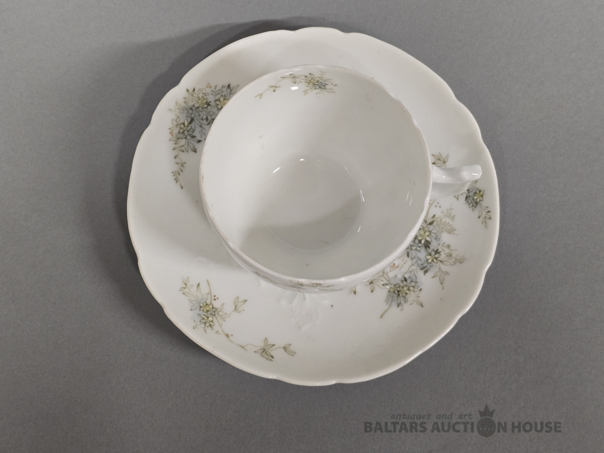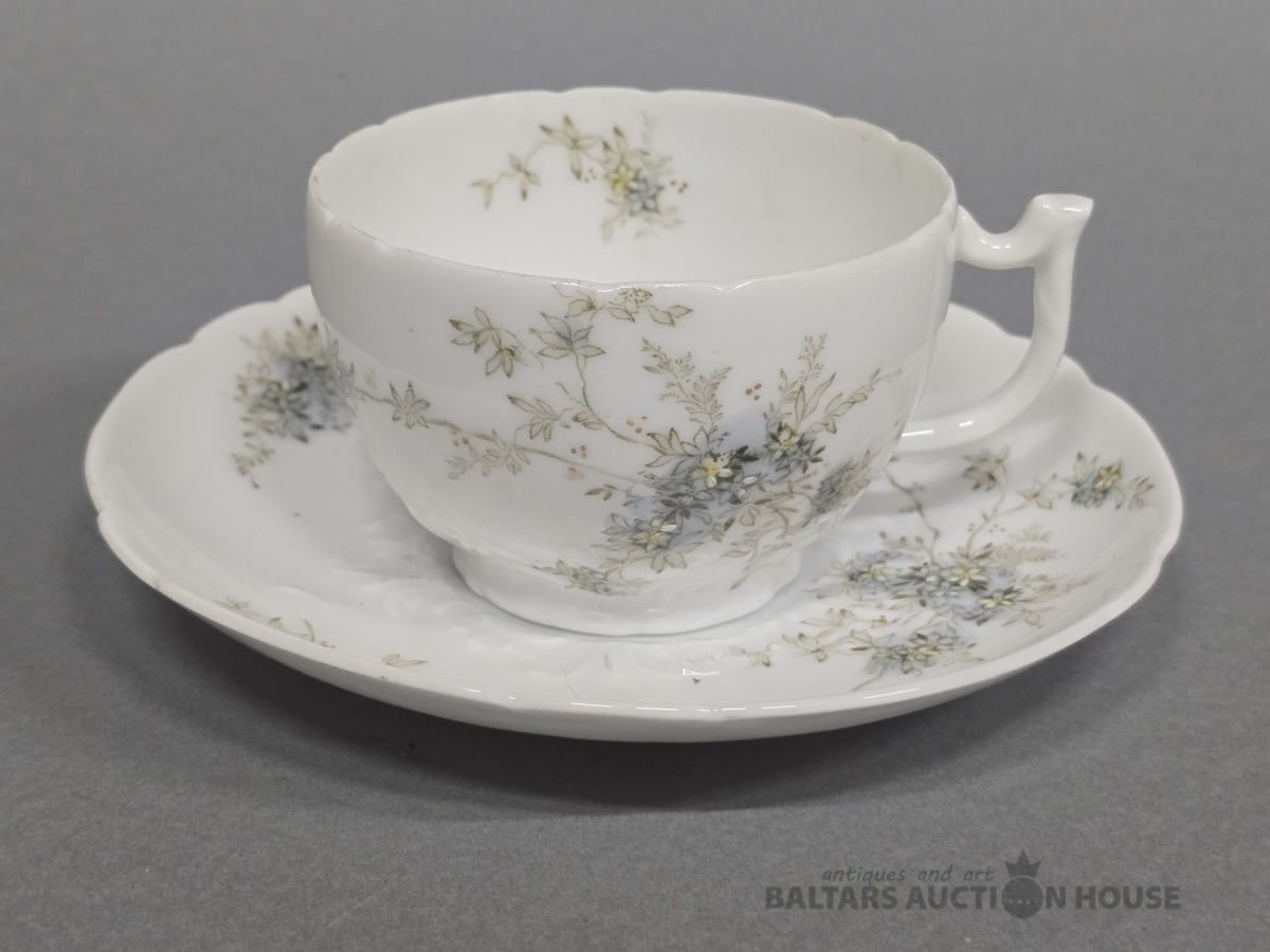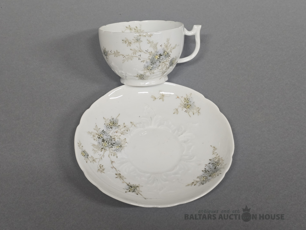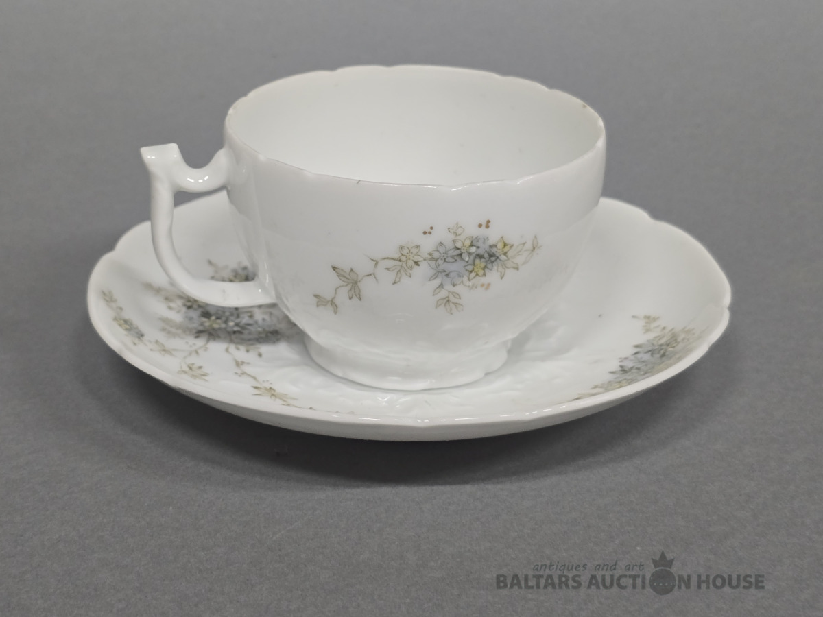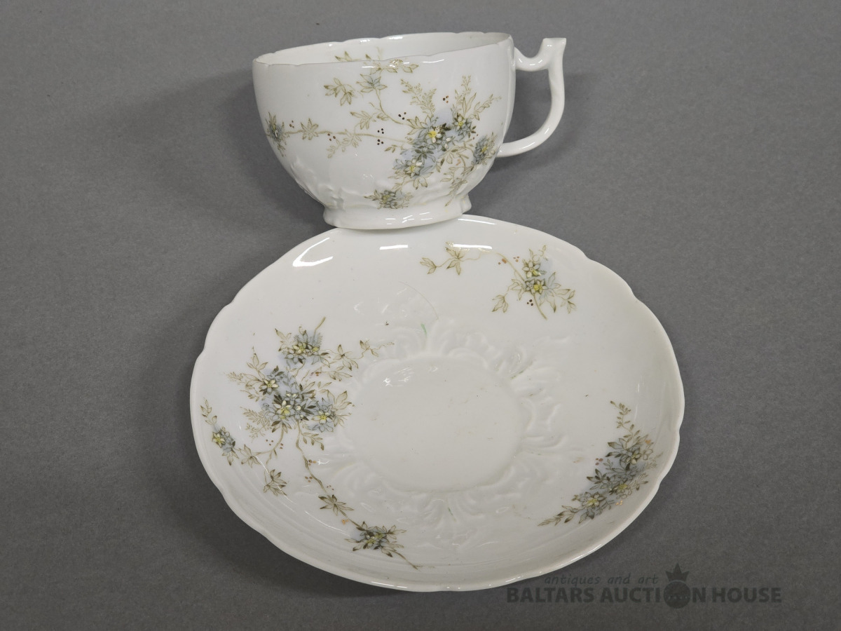Izsmalcināta porcelāna tējas komplekts. Jaksch &Co. 20 gs.Roku gleznojums/zeltījums.