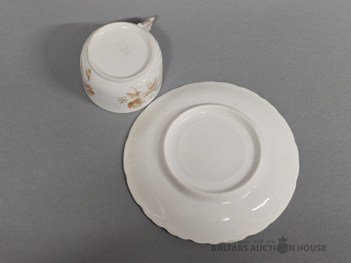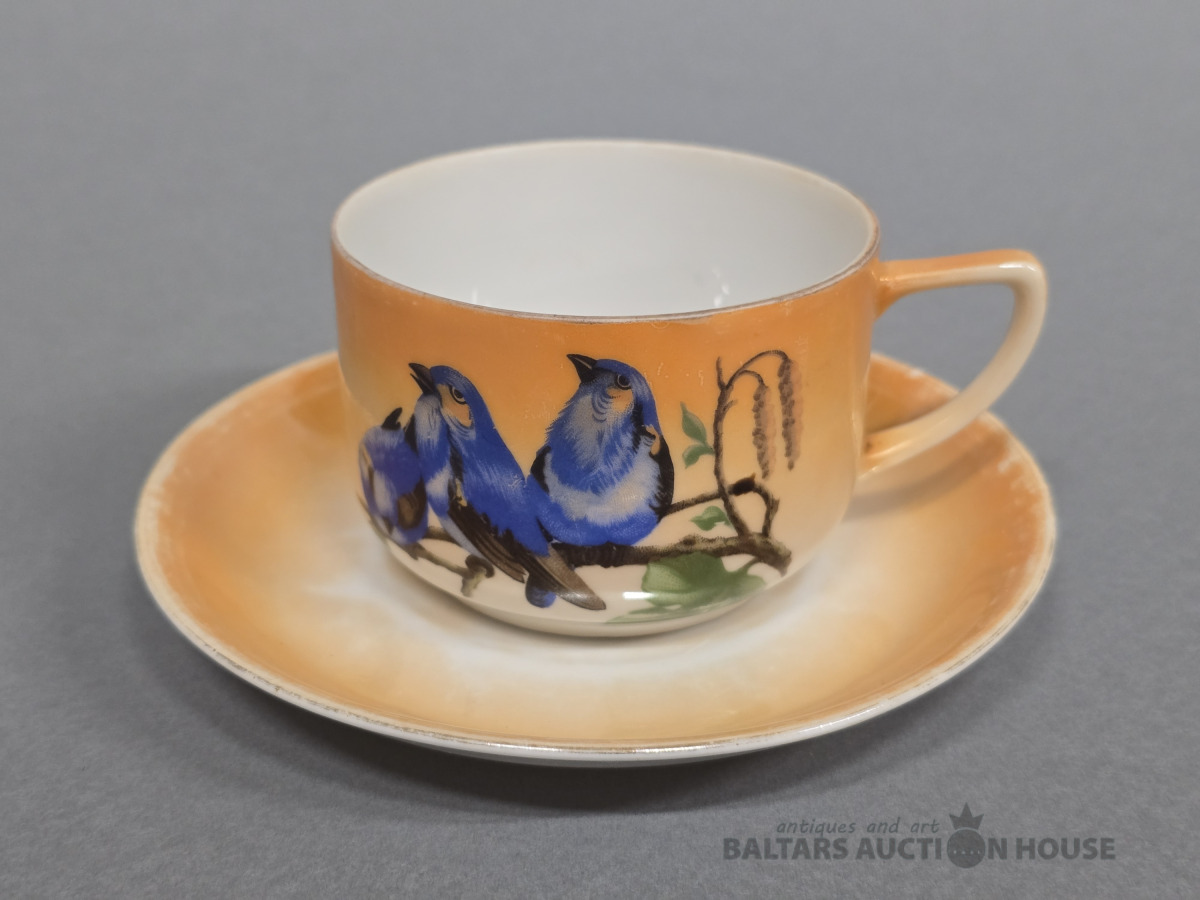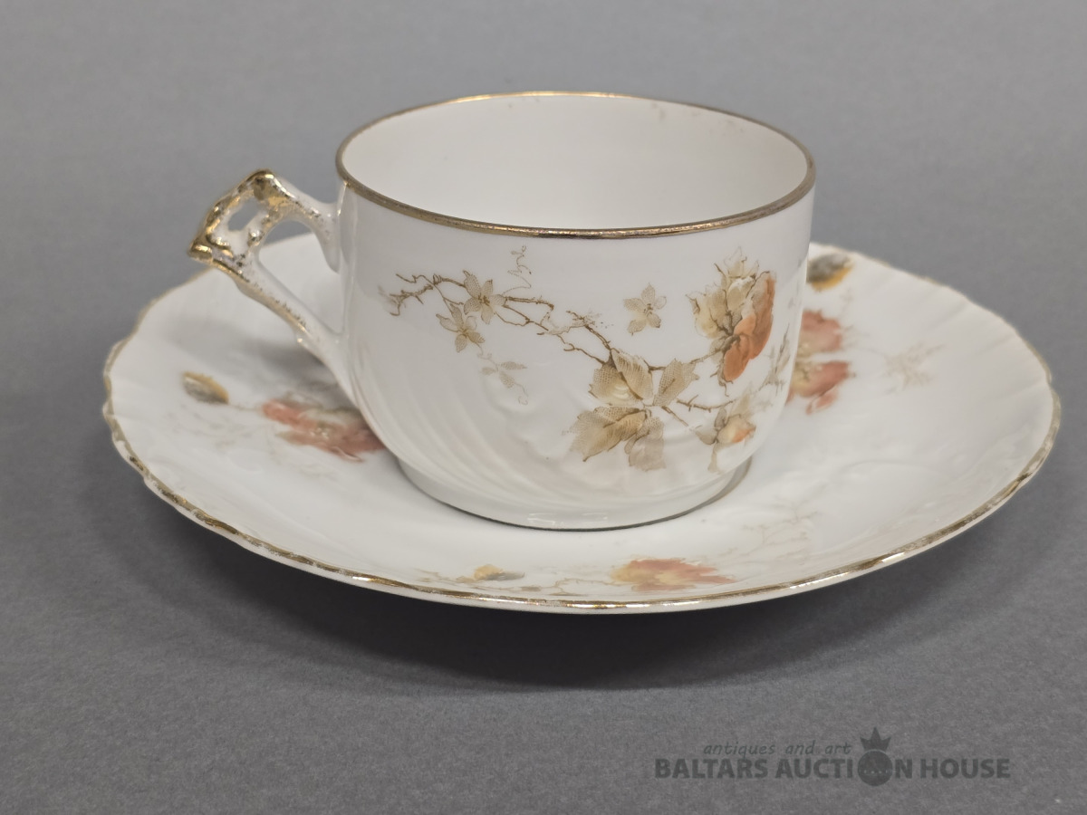 Izsmalcināts porcelāna kafijas komplekts .Jaksch &Co. 19 gs.Roku gleznojums,zeltījums.