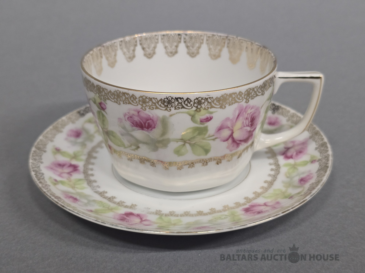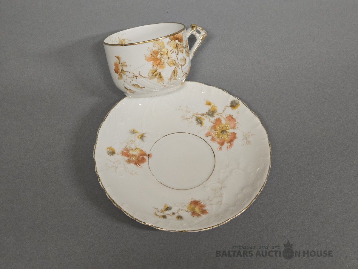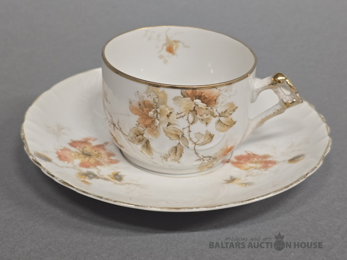 Izsmalcināts porcelāna kafijas komplekts .Jaksch &Co. 19 gs.Roku gleznojums,zeltījums.
