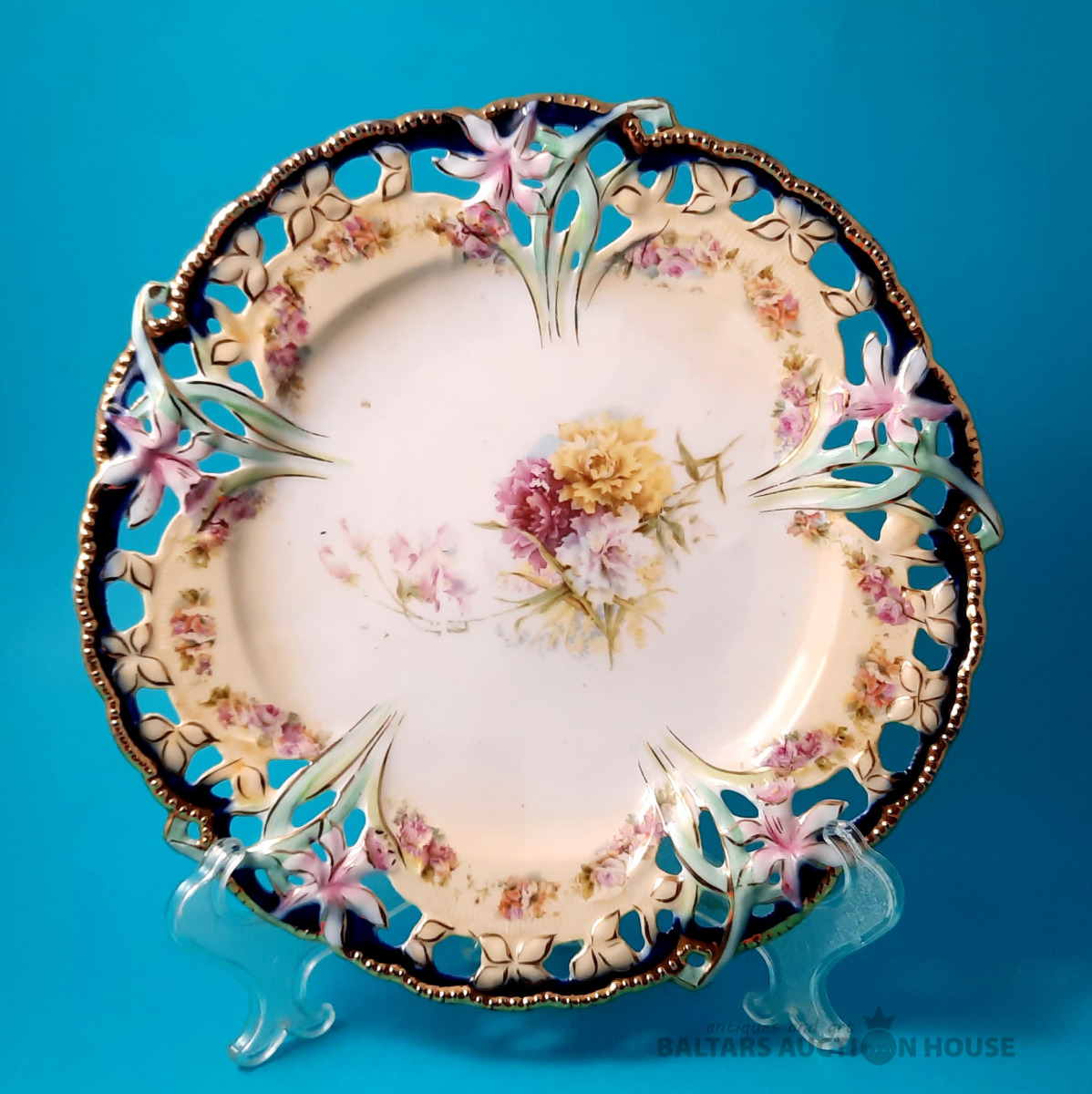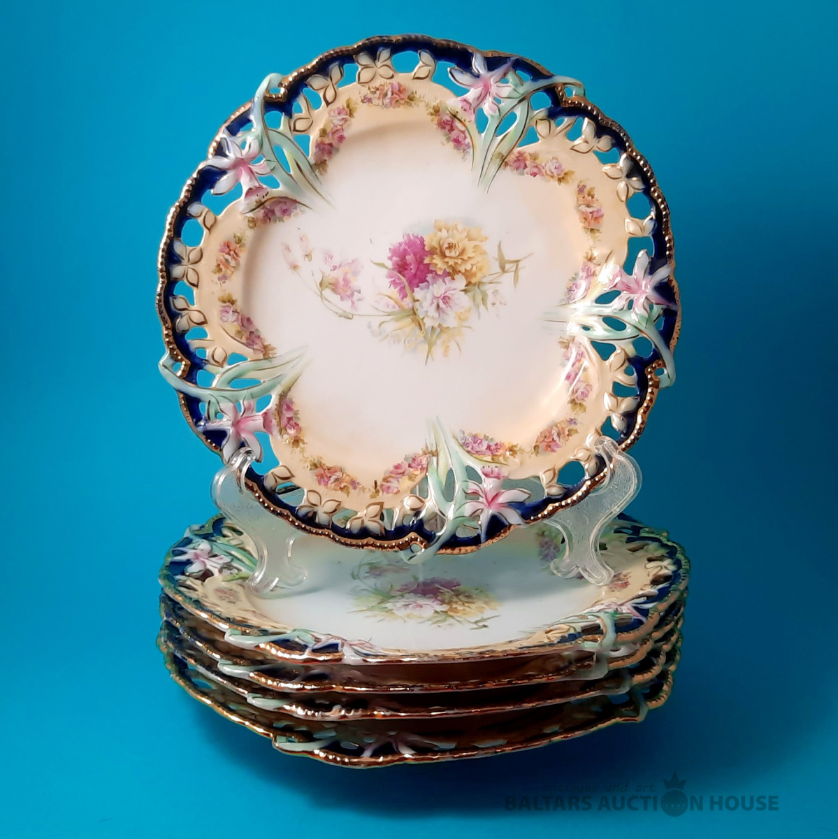 Antīku šķīvju komplekts. (5) Porcelāns. Eiropa. Uzlīme, apzeltījums, krāsojums. Stāvoklis atbilst fotoattēlam.