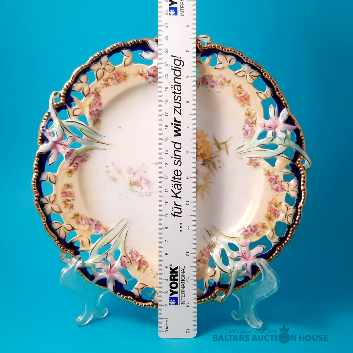 4 PUSDIENU ŠĶĪVJI, porcelāns, apzeltīts, diametrs 25 cm, Rīga, Karla Jēkaba ​​Jesena fabrika, 19. gadsimta beigas – 20. gadsimta sākums. Stāvoklis redzams fotoattēlā. 1933.–1935.