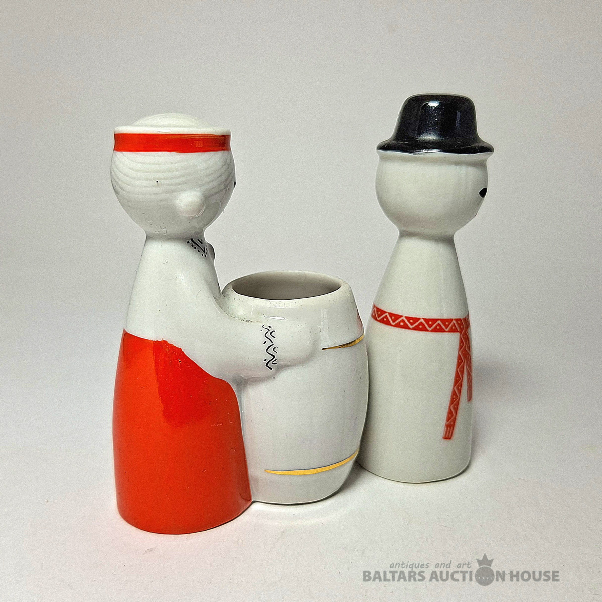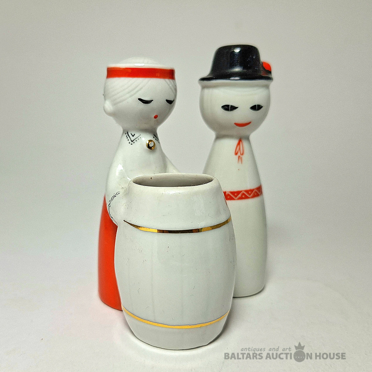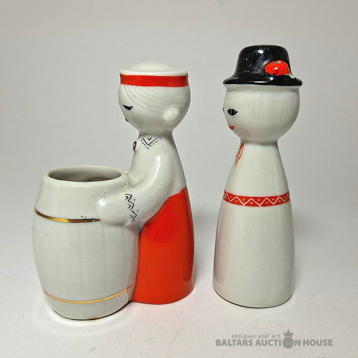 2 figūriņas, porcelāna garšvielu komplekts, Rīga (Latvija), PSRS, Rīgas Porcelāna fabrika, modeļa autore - Beatrise Kārkliņa, 20. gs. 60.-70. gadi, pirmā šķira, (sāls trauciņi / piparu trauciņi) 8,5 / 9 + 6 cm