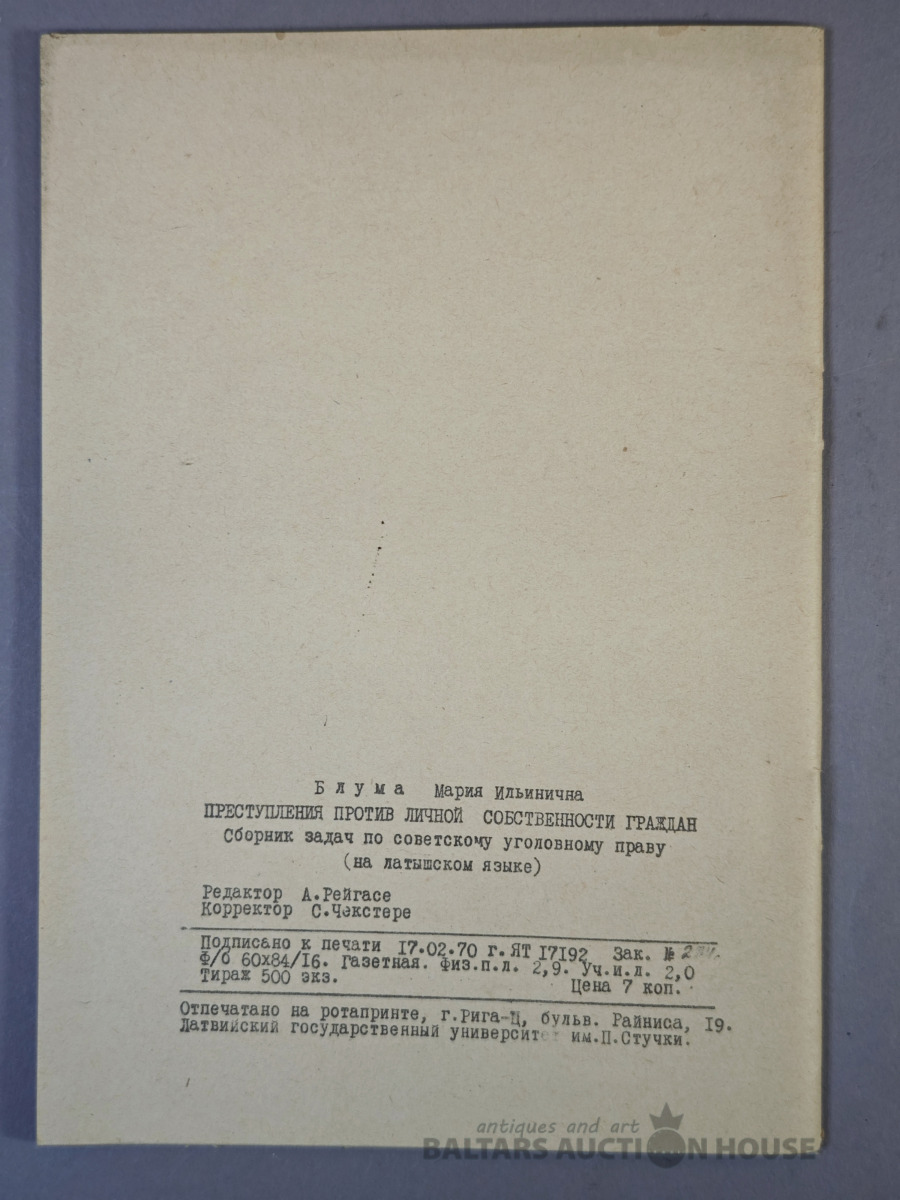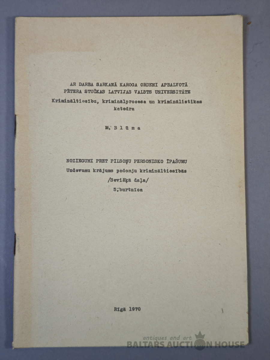 Mācību grāmata par padomju krimināltiesībām "Noziegumi pret pilsoņu personisko īpašumu". Rīga, 1970.