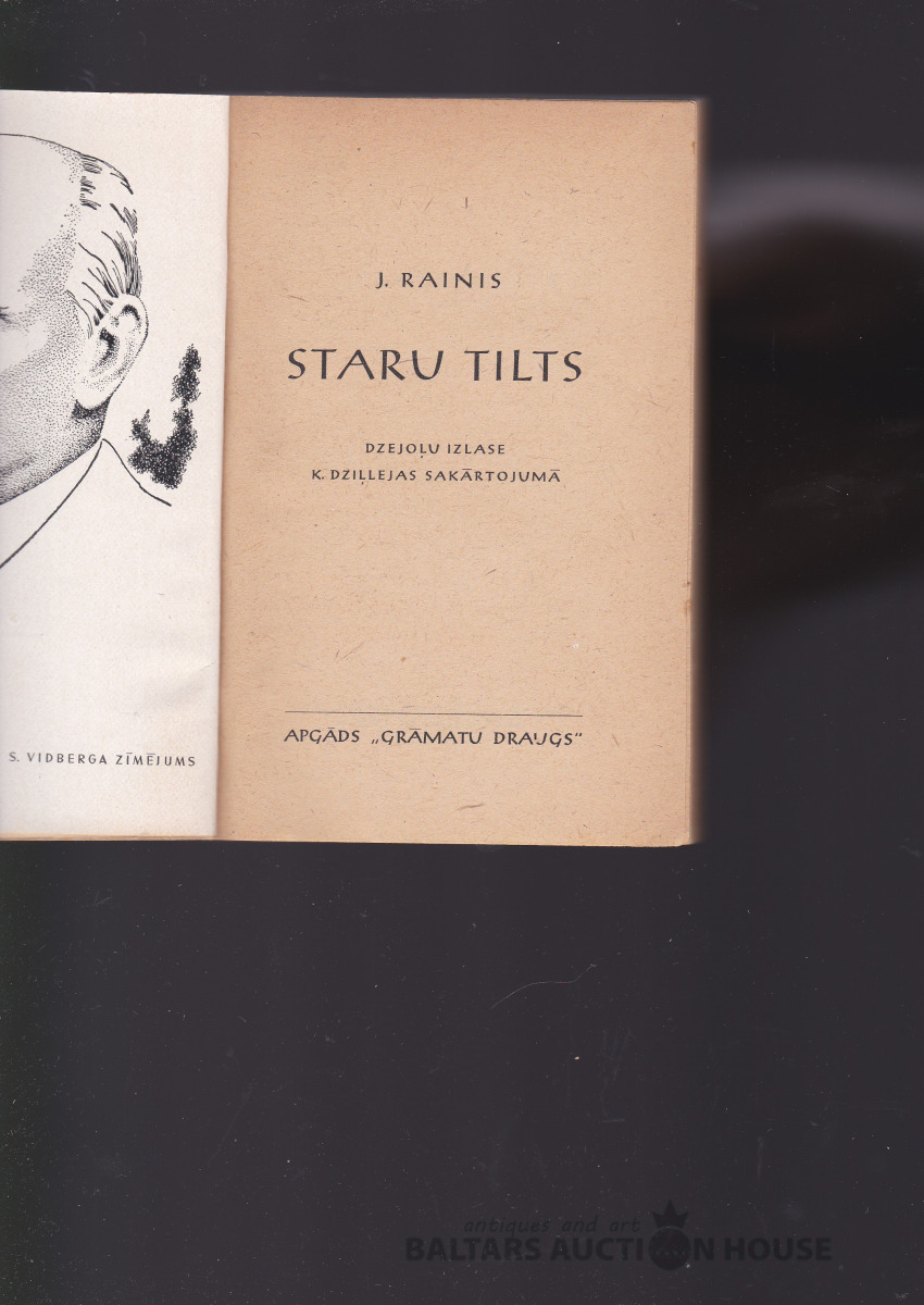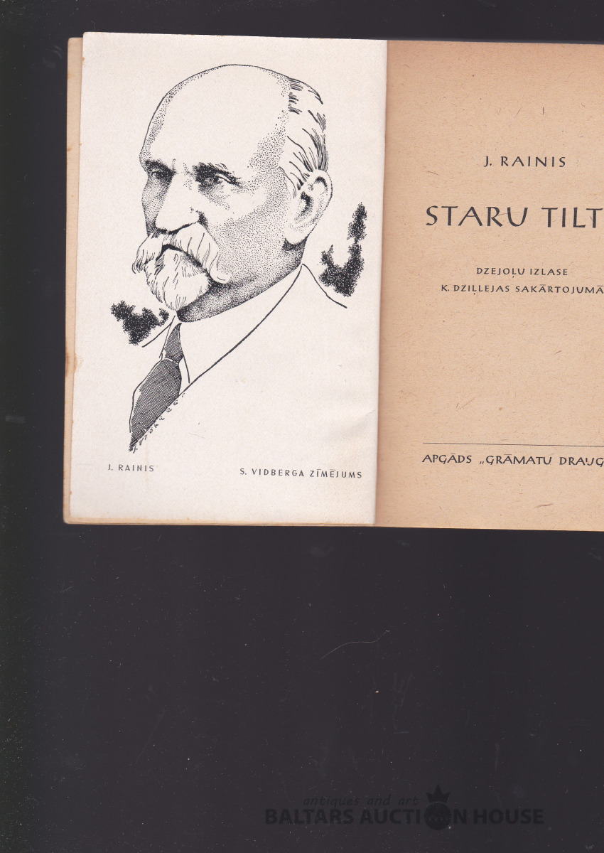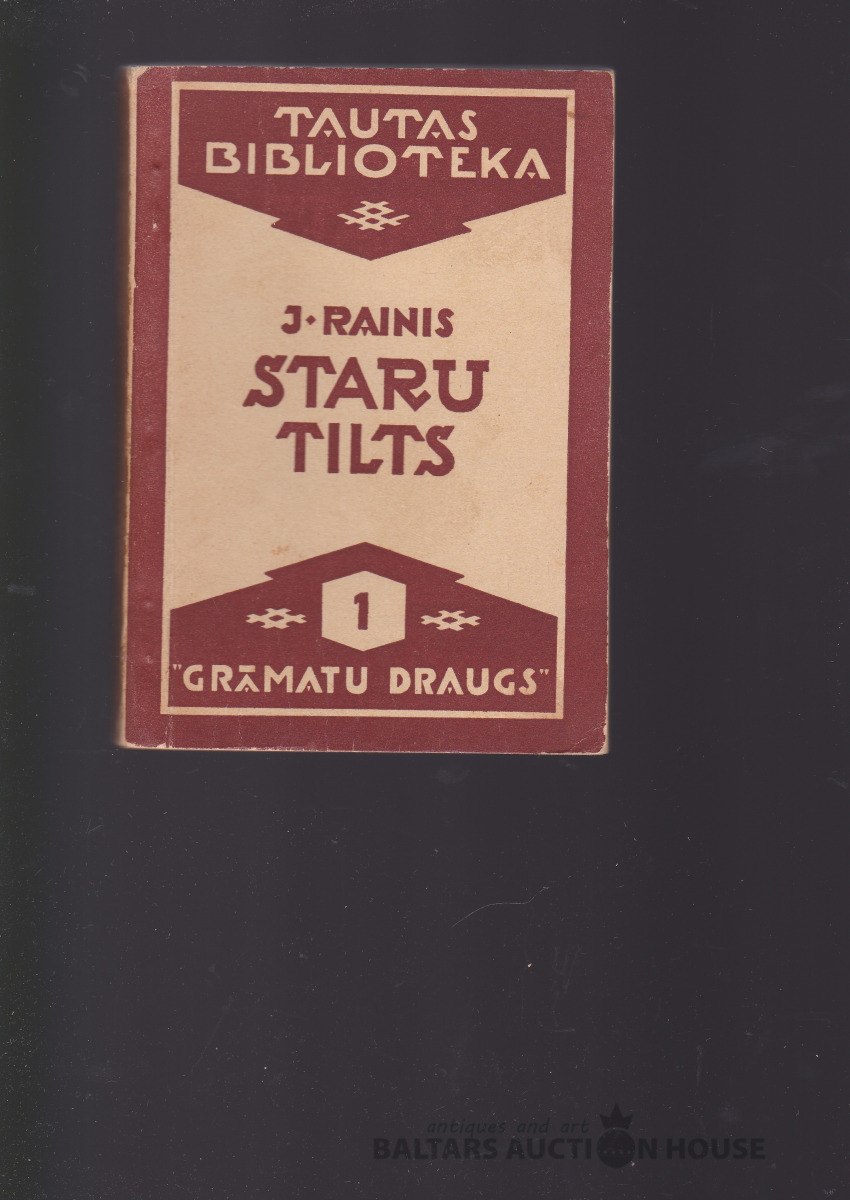Rainis STARU TILTS, 1946. g. Grāmatu draugs izdevums. VIDBERGA ZĪMĒTS RAIŅA PORTETS prettitulā. TAUTAS BIBLIOTĒKA nr. 1