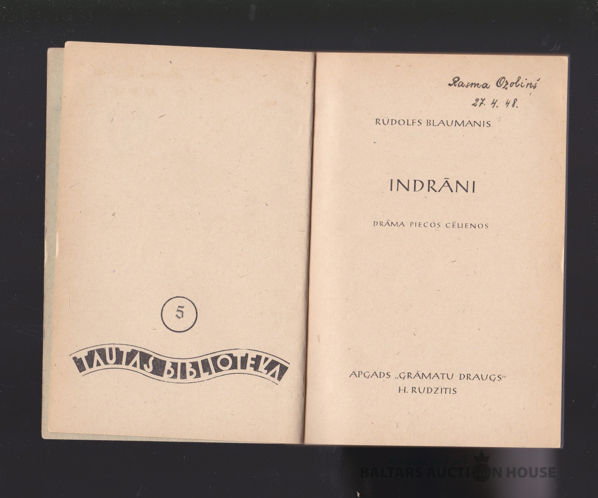 Blaumanis INDRĀNI, 1946. g. Vāku zīm. Harijs Gricevičs. TAUTAS BIBLIOTĒKA nr. 5