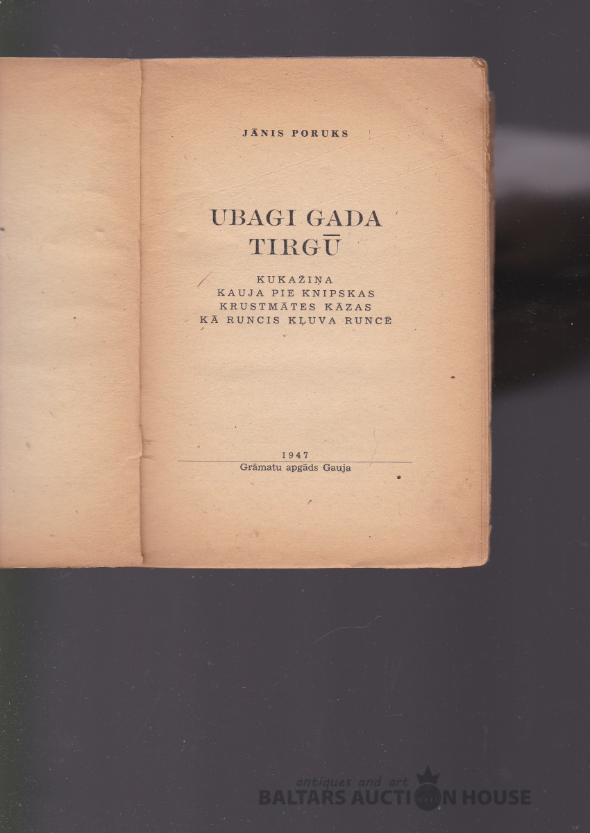 Jānis Poruks UBAGI GADA TIRGŪ, 1947. g. Apgāds Gauja. Vākam E. Rutka kokgriezums.