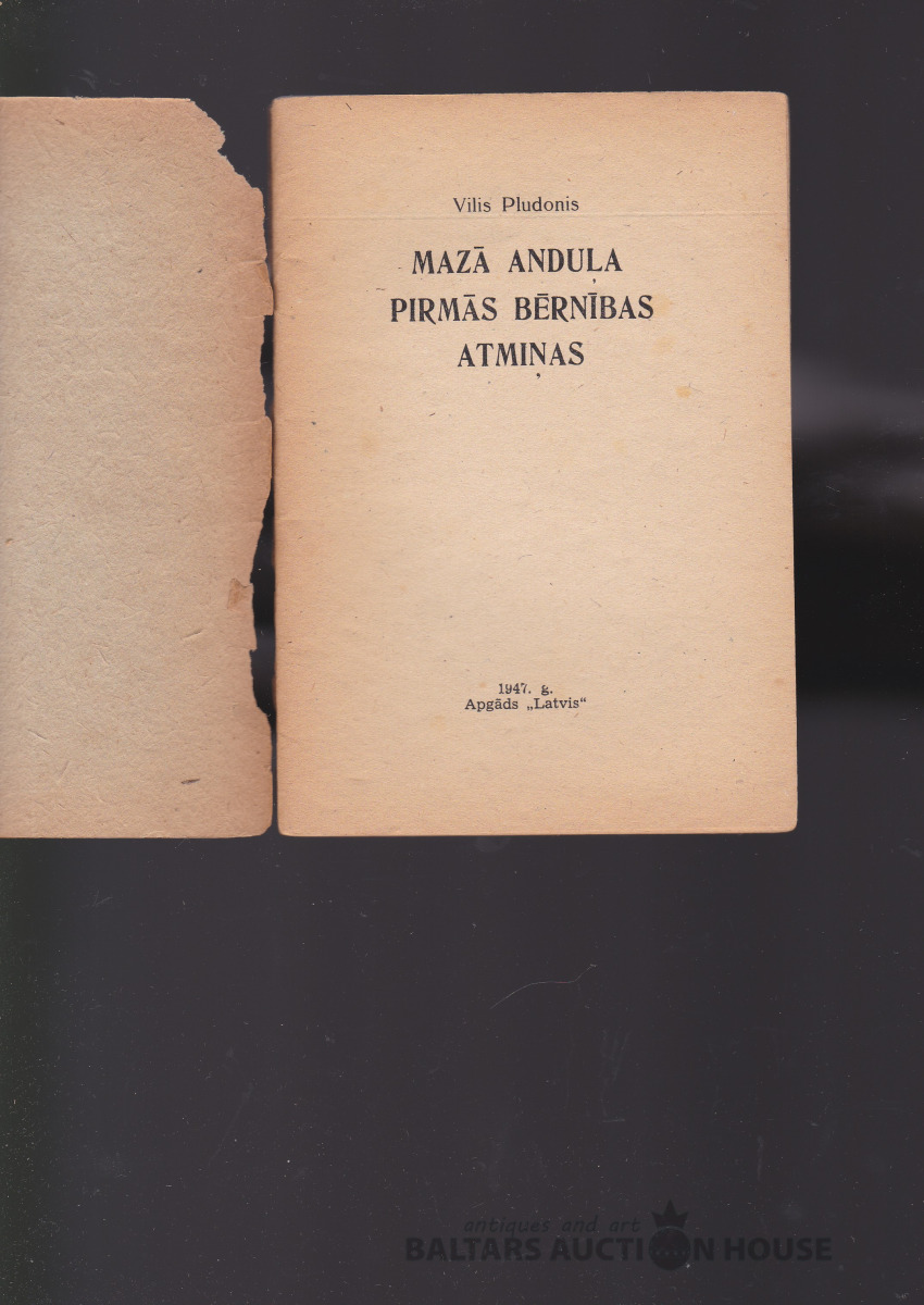 Vilis Plūdonis MAZĀ ANDUĻA PIRMĀS BĒRNĪBAS ATMIŅAS, 1947. g. Apgāds "Latvis". Rūdolfa Vītola vāka zīmējums.