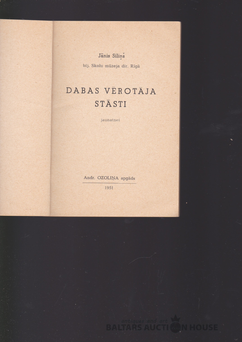 Jānis Siliņš DABAS VĒROTĀJA STĀSTI JAUNATNEI, 1951. g. Vāku zīm. Vilhelms (Vilis) Krūmiņš