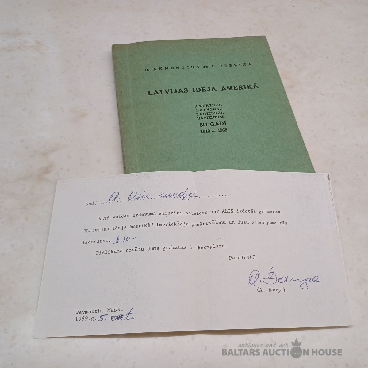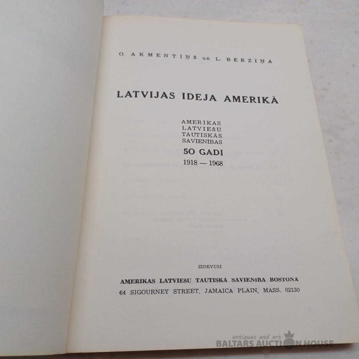 O. Akmentiņš un L. Bērziņa LATVIJAS IDEJA AMERIKĀ (Amerikas latviešu tautiskās savienības 50 gadi 1918–1968), 1969. g. Ar izdevēja (redakcijas kolēģijā) A. Banga parakstu uz pavadlapas. Ar daudzām bildēm (skatīt saturu bildēs)