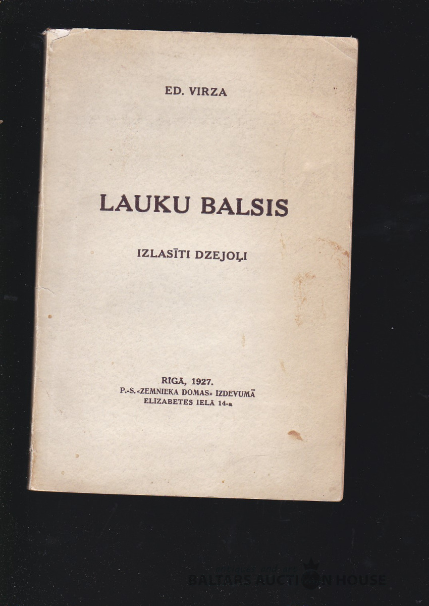 Ed. Virza – LAUKU BALSIS, 1927. g. apgāds ZEMNIEKA DOMAS. Ar Virzas foto prettitulā.