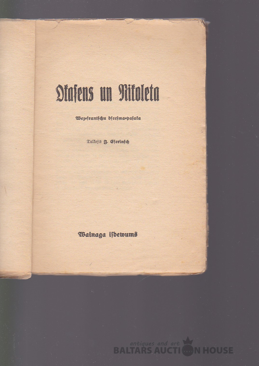 Okasens un Nikoleta, 1921. g. Vāku zīm. Uga Skulme. Vaiņaga izdevums. AVANGARDS.