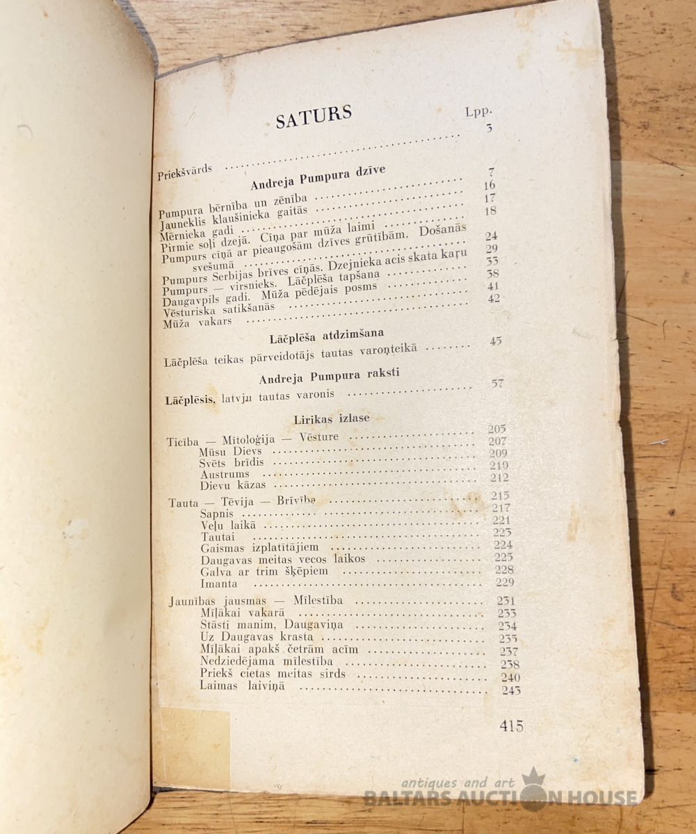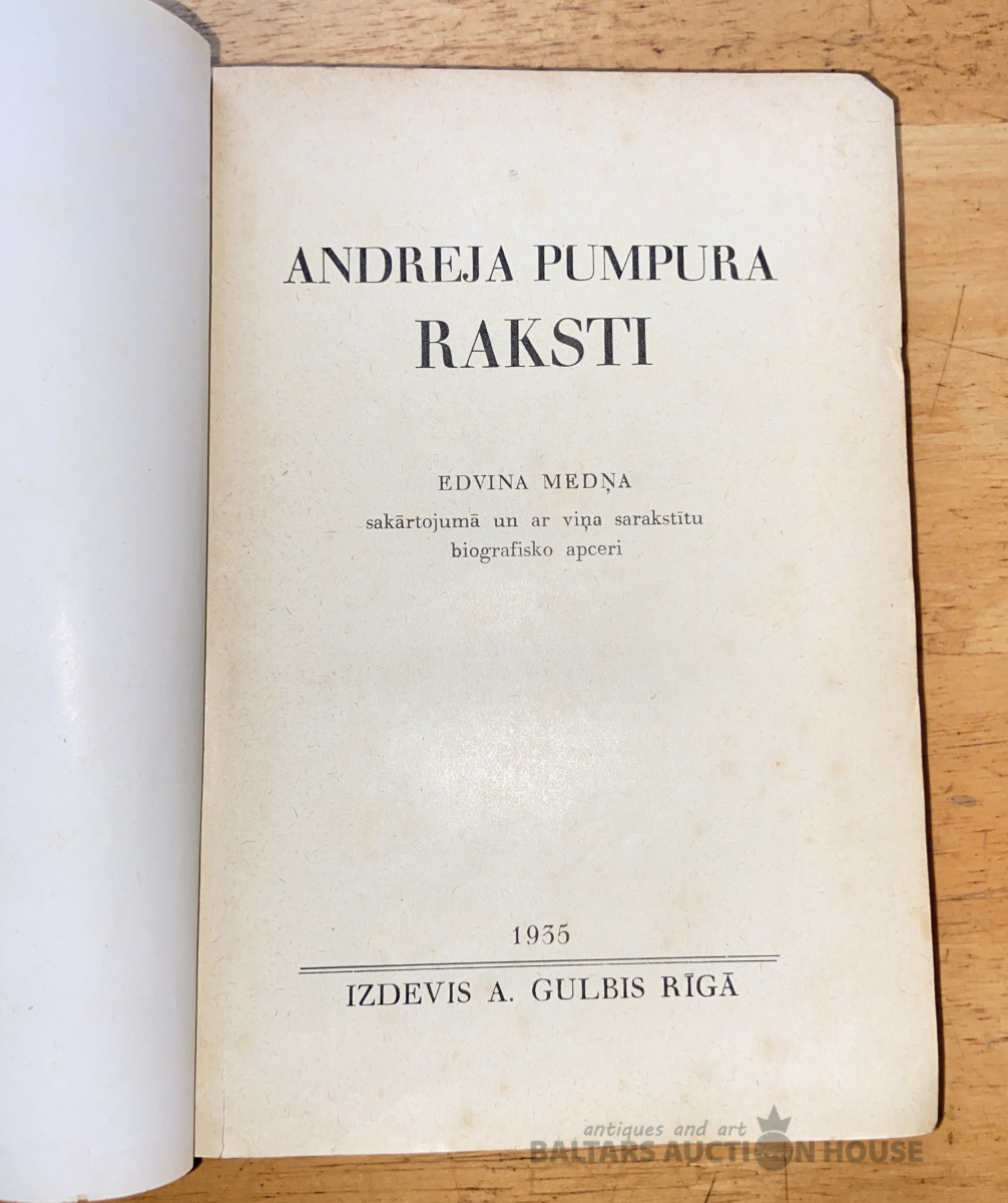 Andreja Pumpura raksti ar ierakstu grāmatā Smagās Artilērijas pulka komandieris pulkvedis P.Veimanis, 1935.gads, 413.lpp.