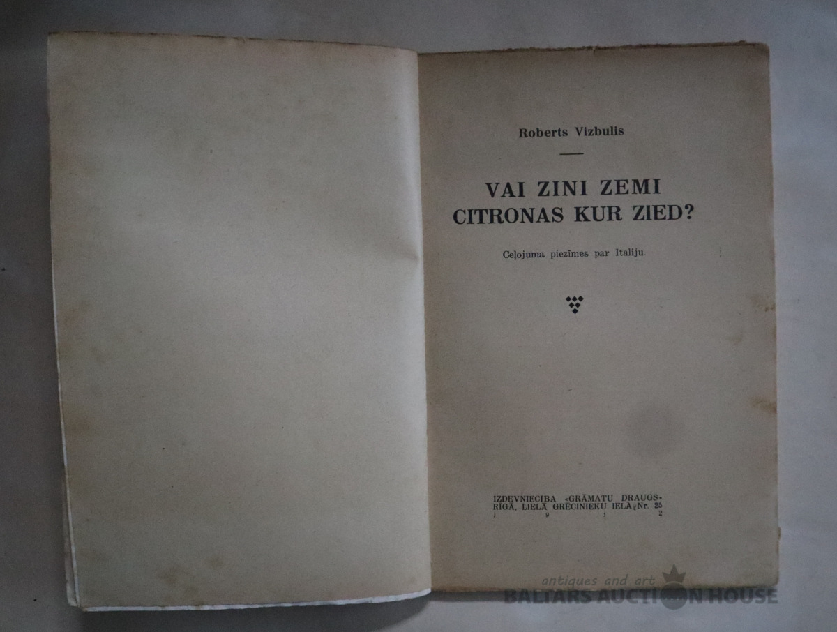 Roberts Vizbulītes "Vai zini zemi citronas kur zied?", 1932. gads