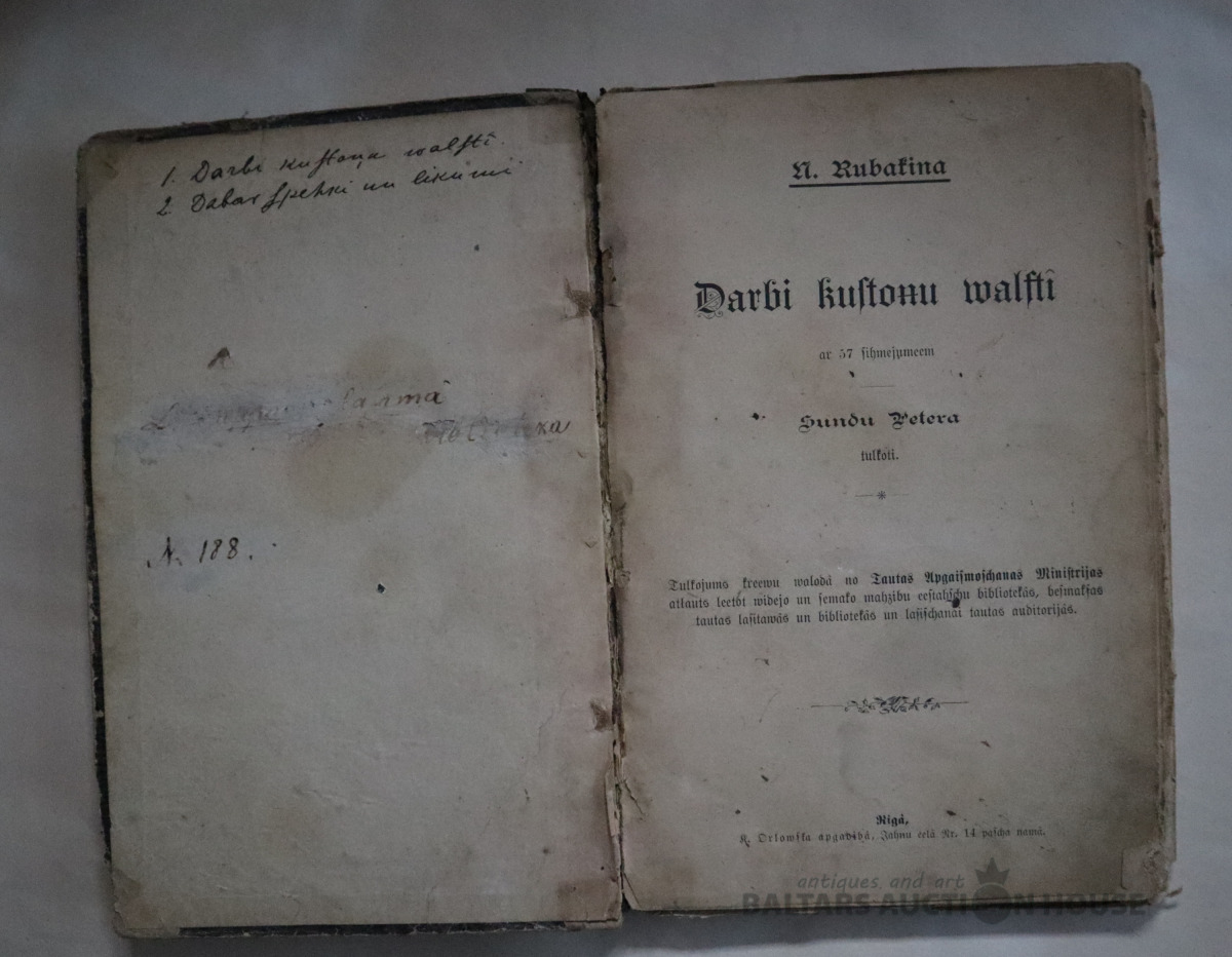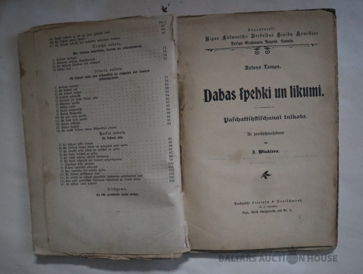 A.Rubakina "Darbi kustoņu valstī" 1901.g. un Antons Lampa "Dabas spēki un likumi" 1898.g. Abas grāmatas iesietas vienos vākos