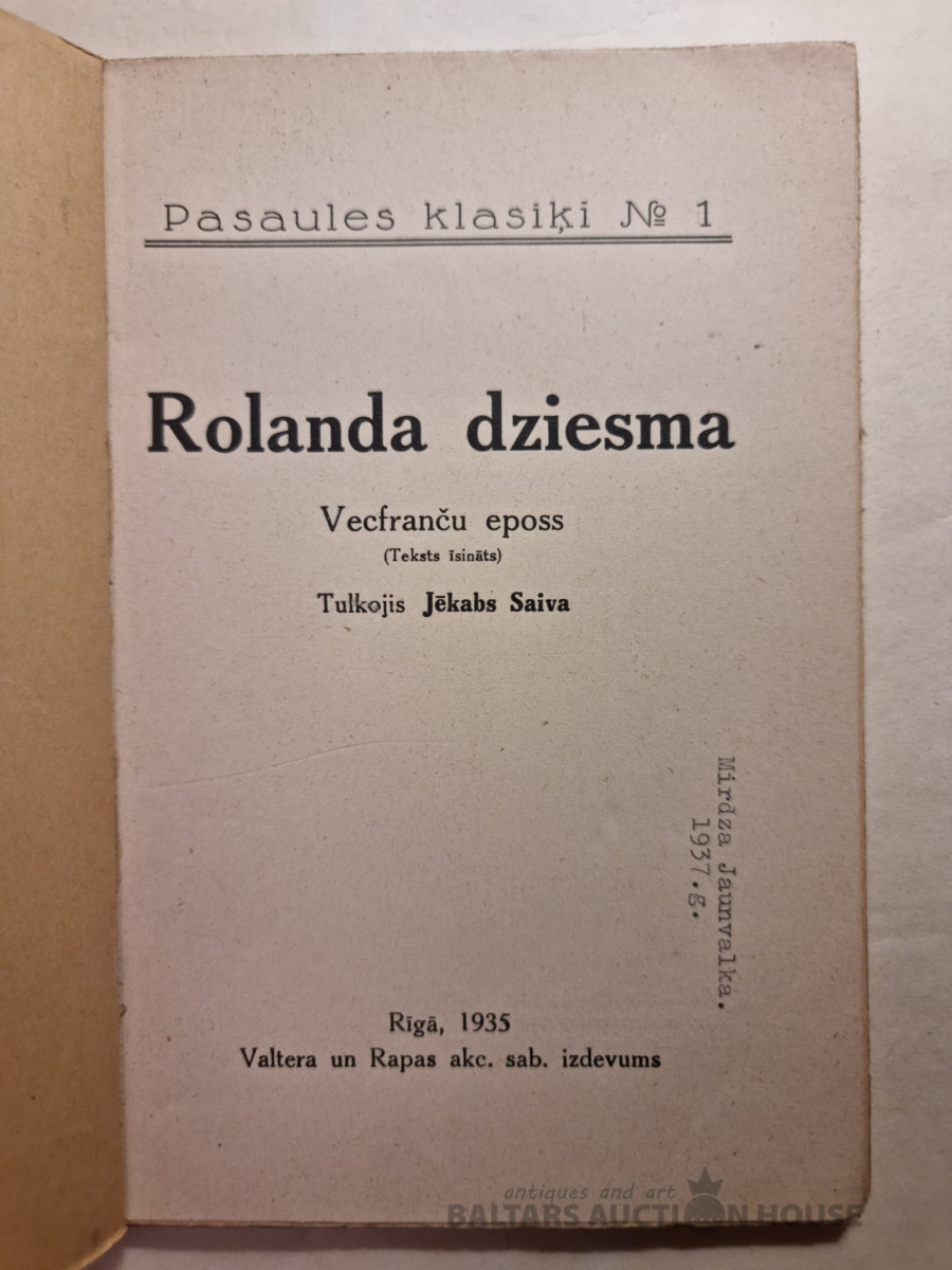 Jēkabs Saiva "Rolanda dziesma" 1935.g.