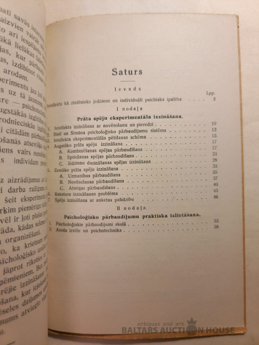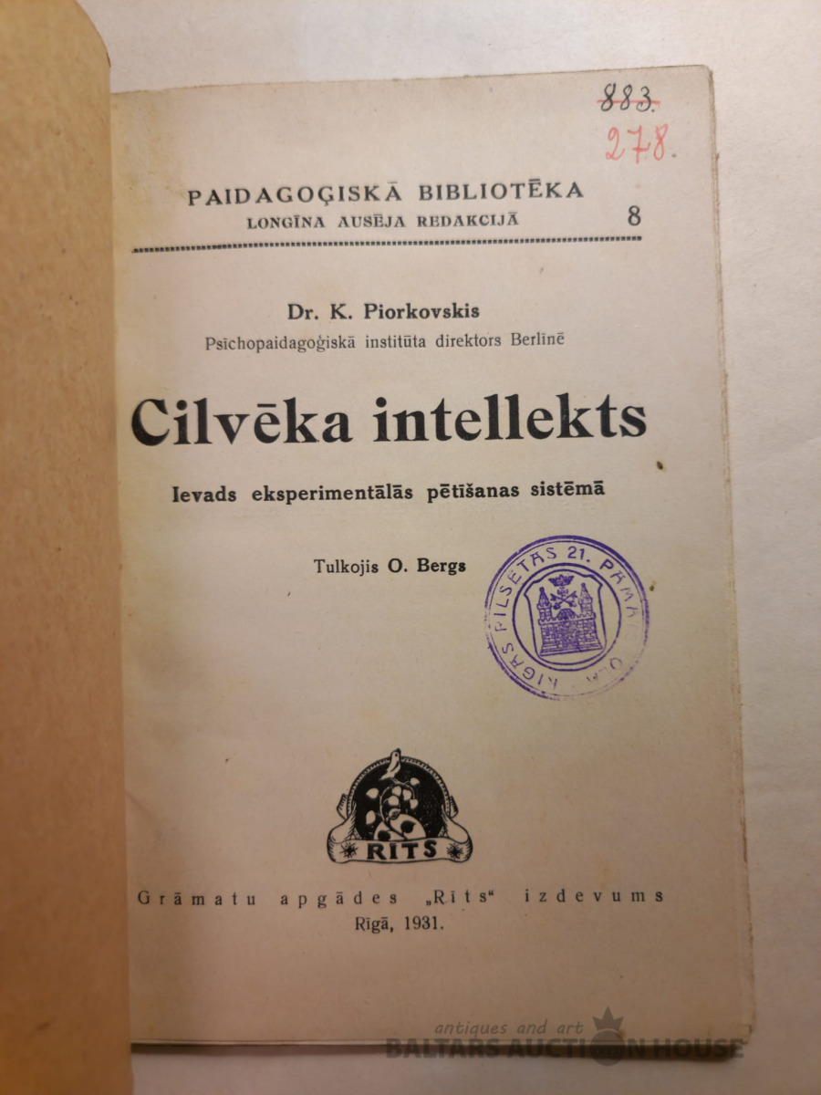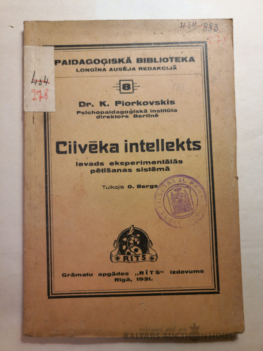 Dr. K. Piorkovskis "Cilvēka intelekts, ievads eksperimentālās pētīšanas sistēmā", 1931. gads