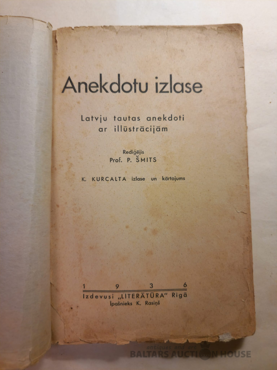 "Anekdotu izlase, latviešu tautas anekdoti ar ilustrācijām", 1936. gads. Nav satura rādītāja!