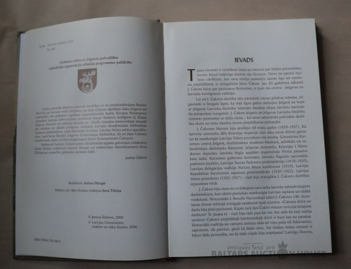 Janīna Šūberte ''Jānis Čakste un Jelgava'', 2006. gads. Grāmata lieliskā stāvoklī.