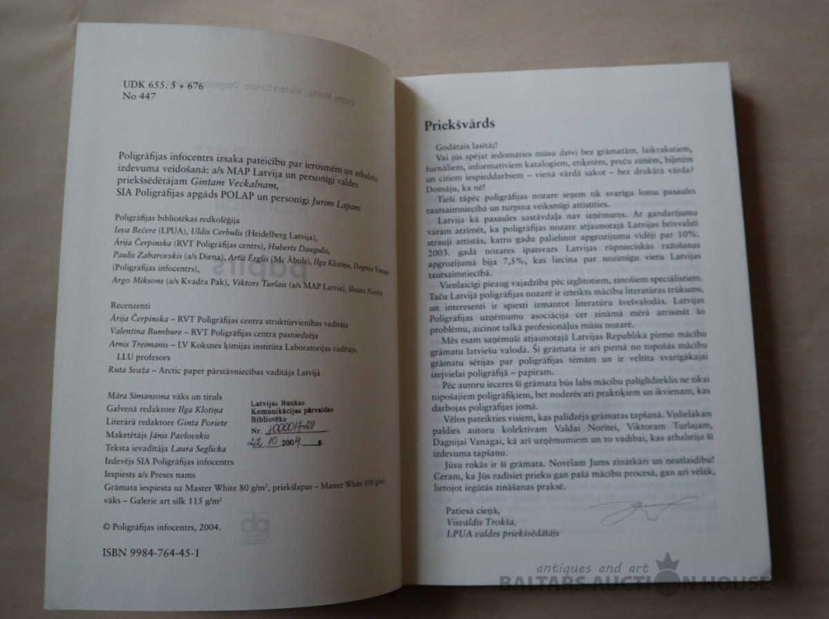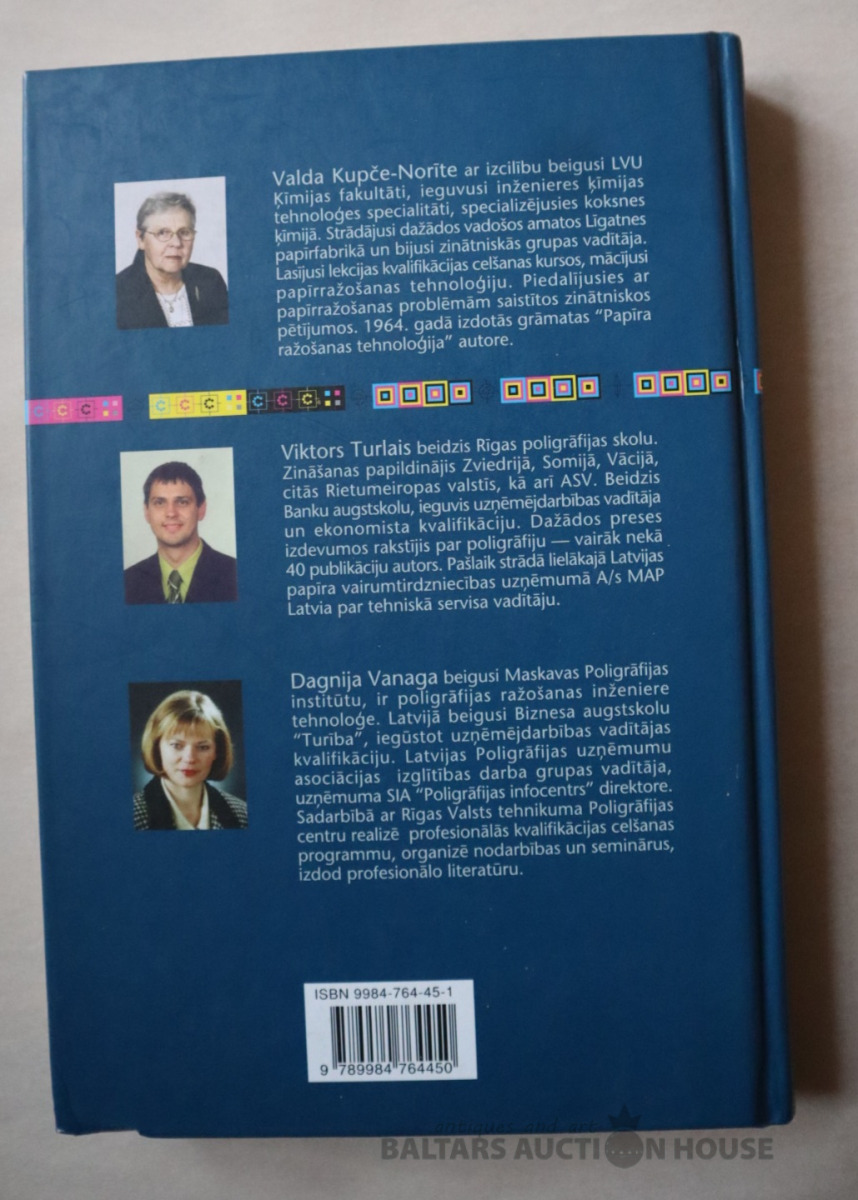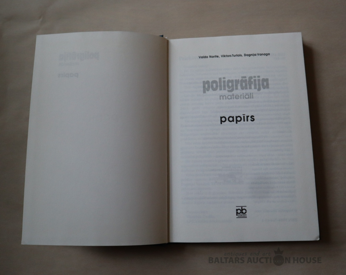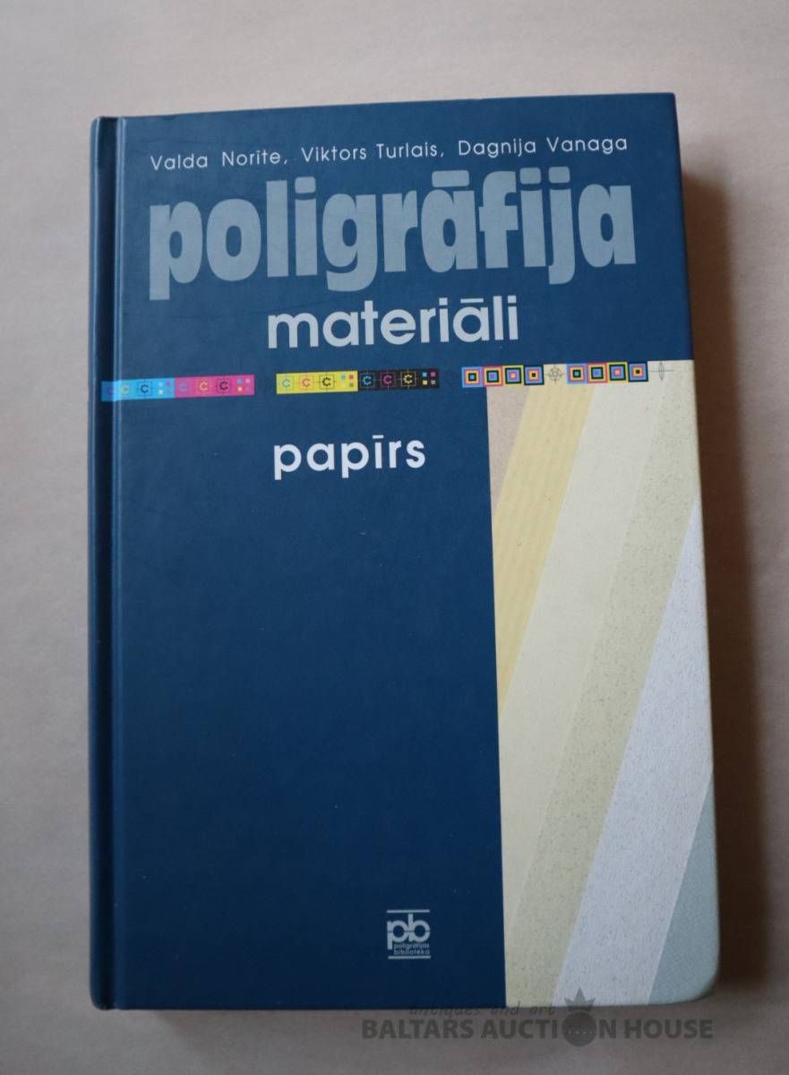 Valda Norīte, Viktors Turlais, Dagnija Vanaga ''Poligrāfija, materiāli, papīrs'', 2004. gads. Grāmata lieliskā stāvoklī.