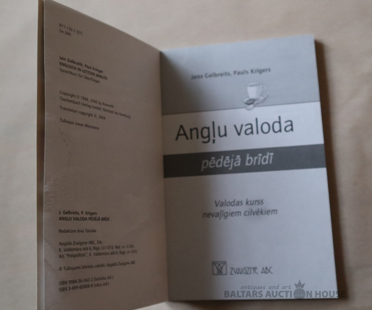 Jans Gelbreits, Pauls Krīgers ''Angļu valoda pēdējā brīdī, valodas kurss nevaļīgiem cilvēkiem ar vārdnīcu'', 2004. gads. Grāmata lieliskā stāvoklī.