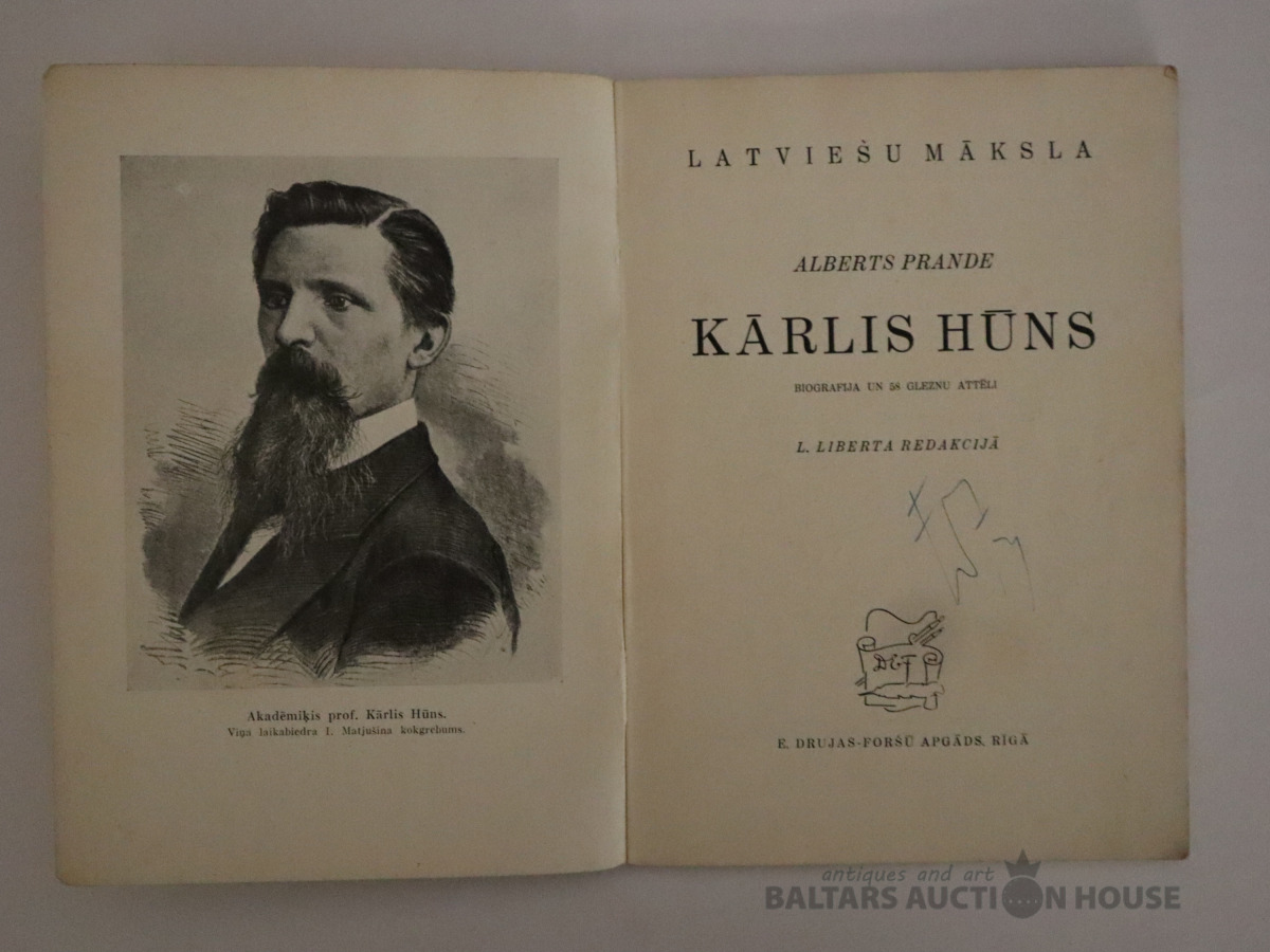 Alberts Prande ''Kārlis Hūns, biogrāfija un 58 gleznu attēli'', Ludolfa Liberta redakcijā''.