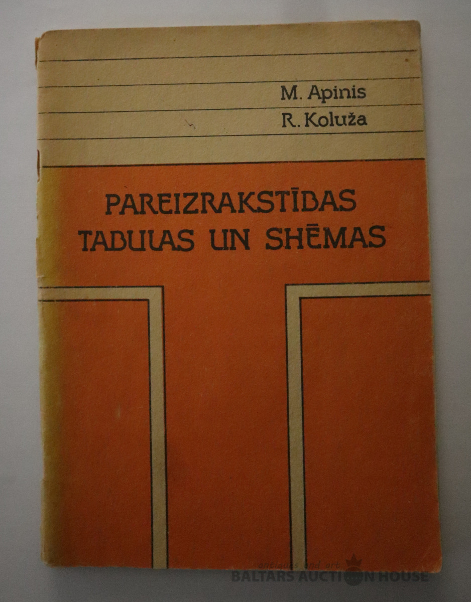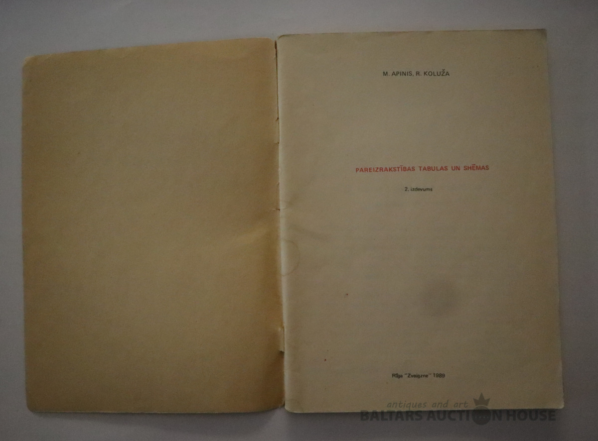 M. Apinis, R. Koluža ''Pareizrakstības tabulas un shēmas'', 1989. gads. Grāmata lieliskā stāvoklī.