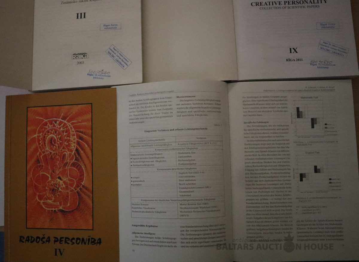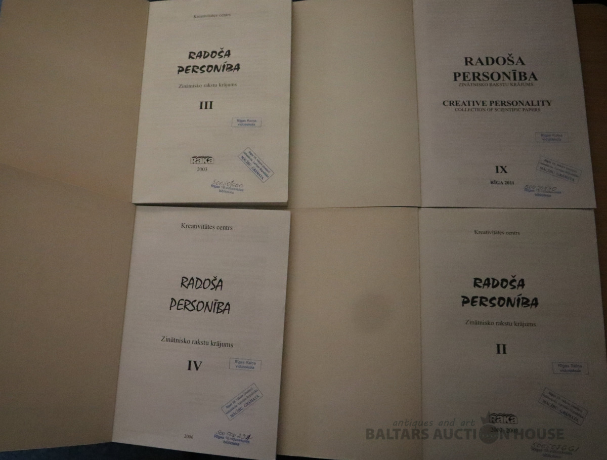 Zinātnisko rakstu krājuma ''Radoša personība'' II, III, IV un IX numurs. Grāmatas lieliskā stāvoklī.