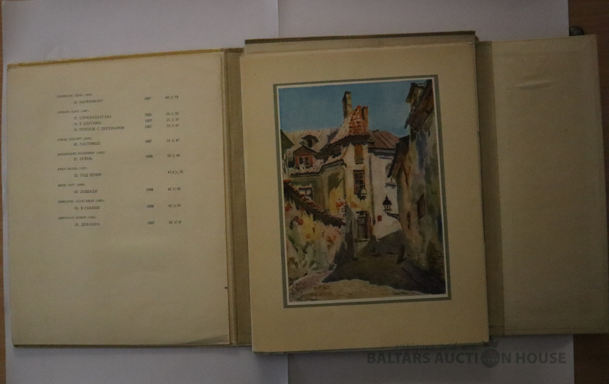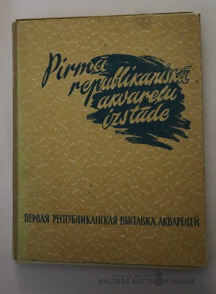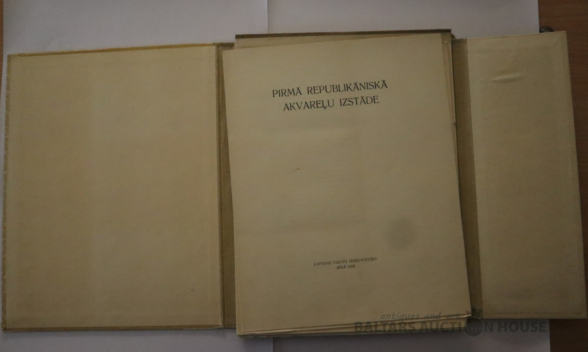 Gleznu reprodukciju mape ''Pirmā republikāniskā akvareļu izstāde'', 1959. gads. Apvalks mazliet nobružāts, bet visas reprodukcijas lieliskā stāvoklī.