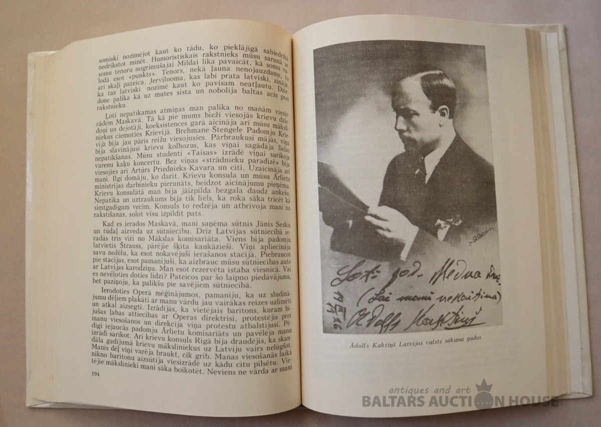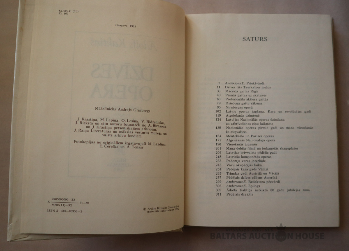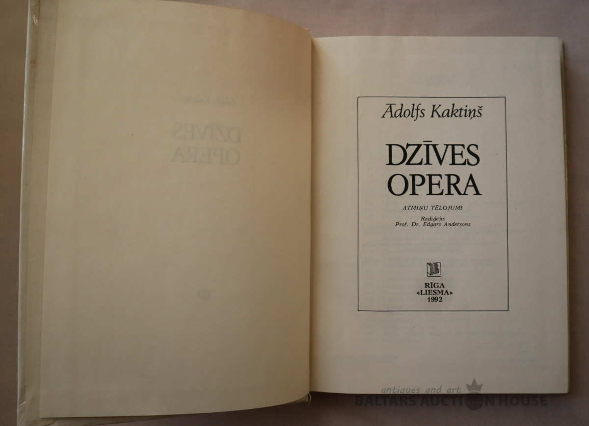 Ādolfs Kaktiņš "Dzīves opera, atmiņu tēlojumi", 1992. gads. Grāmata lieliskā stāvoklī.