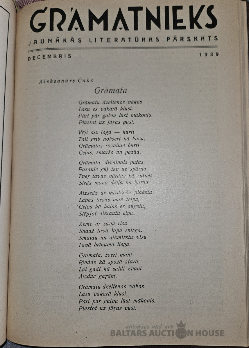 89. MĀKSLAS DARBU IZSOLE NO 21. NOVEMBRA - 25. NOVEMBRIM 21.11.2025 88. MĀKSLAS DARBU IZSOLE NO 24. OKTOBRA - 28. OKTOBRIM 24.10.2025 87. MĀKSLAS DARBU IZSOLE NO 26. SEPTEMBRA - 30. SEPTEMBRIM 26.09.2025 86. MĀKSLAS DARBU IZSOLE NO 22. AUGUSTA - 26. AUGUSTAM 22.08.2025 85. MĀKSLAS DARBU IZSOLE NO 18. JŪLIJA - 22. JŪLIJAM 18.07.2025 84. MĀKSLAS DARBU IZSOLE NO 13. JŪNIJA - 17. JŪNIJAM 13.06.2025 83. MĀKSLAS DARBU IZSOLE NO 9. MAIJA - 13. MAIJAM 09.05.2025 82. MĀKSLAS DARBU IZSOLE NO 4. APRĪĻA - 8. APRĪLIM 04.04.2025 81. MĀKSLAS DARBU IZSOLE NO 14. MARTA - 18. MARTAM 14.03.2025 57. MĀKSLAS DARBU IZSOLE NO 7. FEBRUĀRA - 11. FEBRUĀRIM 07.02.2025 56. MĀKSLAS DARBU IZSOLE NO 10. JANVĀRA - 14. JANVĀRIM 10.01.2025 78. MĀKSLAS DARBU IZSOLE NO 15.NOVEMBRA LĪDZ 19.NOVEMBRIM 15.11.2024 77. MĀKSLAS DARBU IZSOLE NO 27.SEPTEMBRA LĪDZ 1.OKTOBRIM 27.09.2024 76. MĀKSLAS DARBU IZSOLE NO 23. AUGUSTA LĪDZ 27. AUGUSTAM 23.08.2024 75. MĀKSLAS DARBU IZSOLE NO 5. JŪLIJA LĪDZ 9. JŪLIJAM 05.07.2024 74. MĀKSLAS DARBU IZSOLE NO 24. MAIJA LĪDZ 28. MAIJAM 24.05.2024 73. MĀKSLAS DARBU IZSOLE NO 26. APRĪĻA LĪDZ 30. APRĪLIM 26.04.2024 72. MĀKSLAS DARBU IZSOLE NO 8. MARTA LĪDZ 12. MARTAM 08.03.2024 71. MĀKSLAS DARBU IZSOLE NO 9. FEBRUĀRA - 13. FEBRUĀRIM 09.02.2024 70. MĀKSLAS DARBU IZSOLE NO 5. JANVĀRA - 9. JANVĀRIM 05.01.2024 69. MĀKSLAS DARBU IZSOLE NO 8. DECEMBRA - 12. DECEMBRIM. 08.12.2023 68. MĀKSLAS DARBU IZSOLE NO 3.NOVEMBRA - 7. NOVEMBRIM 03.11.2023 67. MĀKSLAS DARBU IZSOLE NO 6 OKTOBRA - 10. OKTOBRIM 06.10.2023 66. MĀKSLAS DARBU IZSOLE NO 8 SEPTEMBRA - 12. SEPTEMBRIM 08.09.2023 66. MĀKSLAS DARBU IZSOLE NO 11. AUGUSTA - 15. AUGUSTAM 11.08.2023 65. MĀKSLAS DARBU IZSOLE NO 7. JŪLIJA - 11. JŪLIJAM 07.07.2023 64. MĀKSLAS DARBU IZSOLE NO 26. MAIJA - 30. MAIJAM 26.05.2023 63. MĀKSLAS DARBU IZSOLE NO 21. APRĪĻA - 25. APRĪLIM 21.04.2023 62. MĀKSLAS DARBU IZSOLE NO 17. MARTA - 21. MARTAM 17.03.2023 61. MĀKSLAS DARBU IZSOLE NO 27. JANVĀRA - 31. JANVĀRIM 27.01.2023 60. MĀKSLAS DARBU IZSOLE NO 9. DECEMBRA - 13. DECEMBRIM 09.12.2022 59. MĀKSLAS DARBU IZSOLE NO 4. NOVEMBRA - 8. NOVEMBRIM 04.11.2022 58. MĀKSLAS DARBU IZSOLE NO 7. OKTOBRA - 11. OKTOBRIM 07.10.2022 57. MĀKSLAS DARBU IZSOLE NO 9. SEPTEMBRA - 13. SEPTEMBRIM 09.09.2022 56. MĀKSLAS DARBU IZSOLE NO 15. AUGUSTA - 21. AUGUSTAM 15.08.2022 55. MĀKSLAS DARBU IZSOLE NO 8. JŪLIJA - 12. JŪLIJAM 08.07.2022 54. MĀKSLAS DARBU IZSOLE NO 3. JŪNIJA - 7. JŪNIJAM 03.06.2022 53. MĀKSLAS DARBU IZSOLE NO 6. MAIJA - 10. MAIJAM 06.05.2022 52. MĀKSLAS DARBU IZSOLE NO 8. APRĪĻA - 12. APRĪLIM 08.04.2022 51. MĀKSLAS DARBU IZSOLE NO 4. MARTA - 8. MARTAM 04.03.2022 50. MĀKSLAS DARBU IZSOLE NO 4. FEBRUĀRA - 8. FEBRUĀRIM 04.02.2022 49. MĀKSLAS DARBU IZSOLE NO 7. JANVĀRA - 11. JANVĀRIM 07.01.2022 48. MĀKSLAS DARBU IZSOLE NO 26. NOVEMBRA - 30. NOVEMBRIM 26.11.2021 47. MĀKSLAS DARBU IZSOLE NO 22. OKTOBRA - 27. OKTOBRIM 22.10.2021 46. MĀKSLAS DARBU IZSOLE NO 24. SEPTEMBRA - 29. SEPTEMBRIM 24.09.2021 45. MĀKSLAS DARBU IZSOLE NO 20. AUGUSTA - 24. AUGUSTAM 20.08.2021 44. MĀKSLAS DARBU IZSOLE NO 23. JŪLIJA - 27. JŪLIJAM 23.07.2021 1. MĀKSLAS DARBU IZSOLE NO 22. JŪNIJA - 30. JŪNIJAM 22.06.2021 42. MĀKSLAS DARBU IZSOLE NO 4. JŪNIJA - 28. JŪNIJAM 04.06.2021 41. MĀKSLAS DARBU IZSOLE NO 21. MAIJA - 25. MAIJAM 21.05.2021 40. MĀKSLAS DARBU IZSOLE NO 8. MAIJA - 12. MAIJAM 08.05.2021 39. MĀKSLAS DARBU IZSOLE NO 23. APRĪĻA - 27. APRĪLIM 23.04.2021 38. MĀKSLAS DARBU IZSOLE NO 9. APRĪĻA - 13. APRĪLIM 09.04.2021 37. MĀKSLAS DARBU IZSOLE NO 26. MARTA - 30. MARTAM 26.03.2021 36. MĀKSLAS DARBU IZSOLE NO 13. MARTA - 17. MARTAM_ 2021 13.03.2021 35. MĀKSLAS DARBU IZSOLE NO 28. FEBRUĀRA - 3. MARTAM_ 2021. 26.02.2021 34. MĀKSLAS DARBU IZSOLE NO 22. JANVĀRA - 26. JANVĀRIM_ 2021. 22.01.2021 Atkārtota Izsole 02.12.2020 33. MĀKSLAS DARBU IZSOLE NO 24. NOVEMBRA - 1. DECEMBRIM 27.11.2020 32. MĀKSLAS DARBU IZSOLE NO 30. OKTOBRA - 3. NOVEMBRIM 30.10.2020 31. MĀKSLAS DARBU IZSOLE NO 25. SEPTEMBRA - 29. SEPTEMBRIM 25.09.2020 29. MĀKSLAS DARBU IZSOLE NO 24. jūlijs - 28. jūlijs. 24.07.2020 29. MĀKSLAS DARBU IZSOLE NO 12. jūnija - 16. jūnijam. 12.06.2020 28. MĀKSLAS DARBU IZSOLE NO 22. maija - 26. maijam. 22.05.2020 27. MĀKSLAS DARBU IZSOLE NO 24. APRĪĻA LĪDZ 28. APRĪLIM 24.04.2020 26. MĀKSLAS DARBU IZSOLE NO 20. MARTA LĪDZ 24. MARTAM 20.03.2020 25. MĀKSLAS DARBU IZSOLE NO 21. FEBRUĀRA LĪDZ 25. FEBRUĀRIM 21.02.2020 24. MĀKSLAS DARBU IZSOLE NO 24. JANVĀRA LĪDZ 28. JANVĀRIM 24.01.2020 23. MĀKSLAS DARBU IZSOLE NO 13. DECEMBRA LĪDZ 17. DECEMBRIM 13.12.2019 22. MĀKSLAS DARBU IZSOLE NO 22. NOVEMBRA LĪDZ 26. NOVEMBRIM 22.11.2019 21. MĀKSLAS DARBU IZSOLE NO 25. OKTOBRA LĪDZ 29. OKTOBRIM 25.10.2019 20.MĀKSLAS DARBU IZSOLE NO 20. SEPTEMBRA LĪDZ 24. SEPTEMBRIM 20.09.2019 19.MĀKSLAS DARBU IZSOLE NO 23. AUGUSTA LĪDZ 27. AUGUSTAM. 23.08.2019 18.MĀKSLAS DARBU IZSOLE NO 26. JŪLIJA LĪDZ 30. JŪLIJAM 26.07.2019 17.MĀKSLAS DARBU IZSOLE NO 14. JŪNIJA LĪDZ 18. JŪNIJAM 14.06.2019 16.MĀKSLAS DARBU IZSOLE NO 24.MAIJA LĪDZ 28.MAIJAM. 24.05.2019 15. MĀKSLAS DARBU IZSOLES NO 17. MAIJA - 21. MAIJAM 17.05.2019 14. MĀKSLAS DARBU IZSOLES NO 26.APRĪĻA - 30.APRĪLIM 26.04.2019 PASTKARŠU IZSOLE NO 08. APRĪĻA LĪDZ 09. APRĪLIM. 08.04.2019 13. MĀKSLAS DARBU IZSOLES ATKĀRTOJUMS 29. MARTĀ 29.03.2019 13. MĀKSLAS DARBU IZSOLE NO 22. MARTA LĪDZ 26.MARTAM. 22.03.2019 12. MĀKSLAS DARBU IZSOLE NO 22.FEBRUĀRIS LĪDZ 26. FEBRUĀRIM. 22.02.2019 11. MĀKSLAS DARBU IZSOLE NO 25. JANVĀRA LĪDZ 29. JANVĀRIM 25.01.2019 10. MĀKSLAS DARBU IZSOLE NO 14. DECEMBRA LĪDZ 18. DECEMBRIM 14.12.2018 9. MĀKSLAS DARBU IZSOLE NO 25. NOVEMBRA LĪDZ 27. NOVEMBRA 25.11.2018 8. MĀKSLAS DARBU IZSOLE NO 23. NOVEMBRA LĪDZ 24. NOVEMBRIM 23.11.2018 7.MĀKSLAS DARBU IZSOLE NO 28.OKTOBRA LĪDZ 30.OKTOBRIM 28.10.2018 6. MĀKSLAS DARBU IZSOLE NO 26. SEPTEMBRA LĪDZ 27. SEPTEMBRIM. 26.10.2018 5. MĀKSLAS DARBU IZSOLE 26. SEPTEMBRĪ. 26.