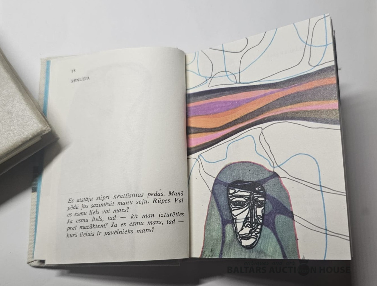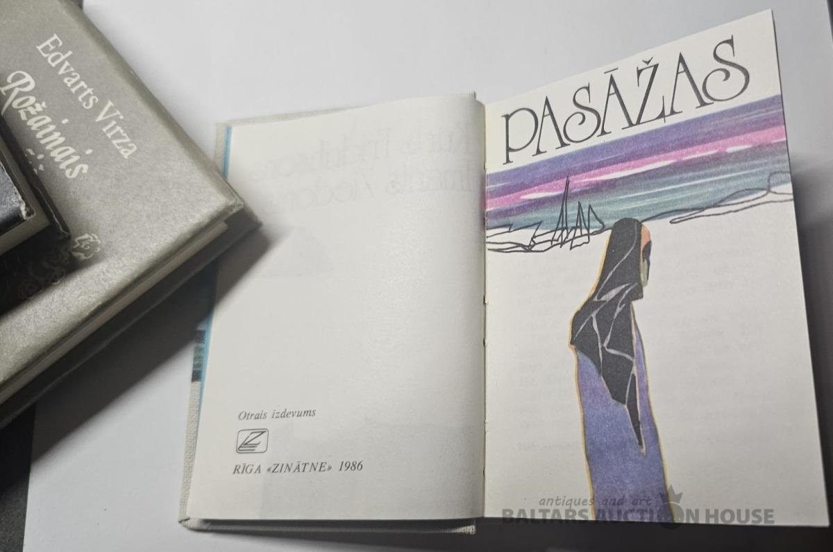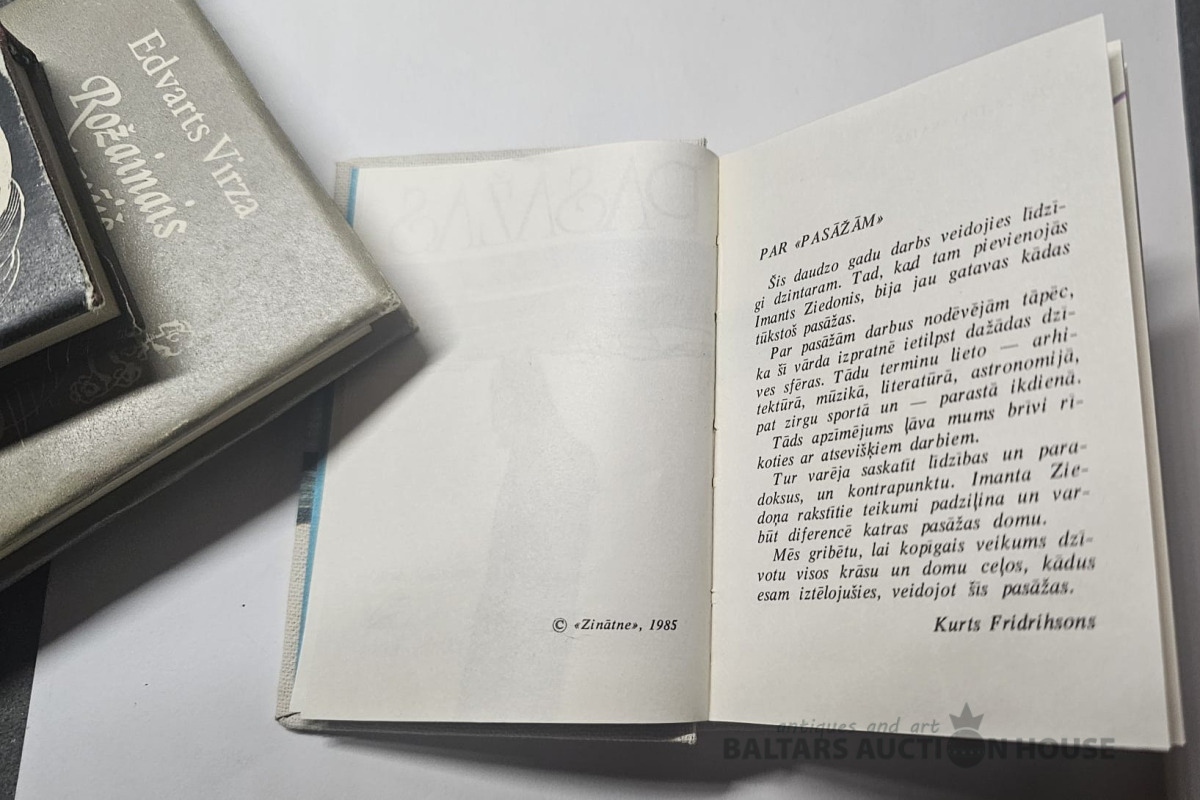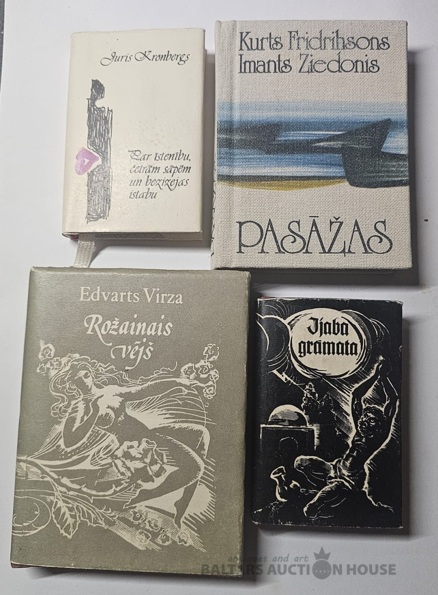 Edvarts Virza, Imants Ziedonis/Kurts Fridrihsons, Juris Kronbergs, Ijaba grāmata (no 1689 tulkotas Bībeles), 4 maza formāta interesantas grāmatas.