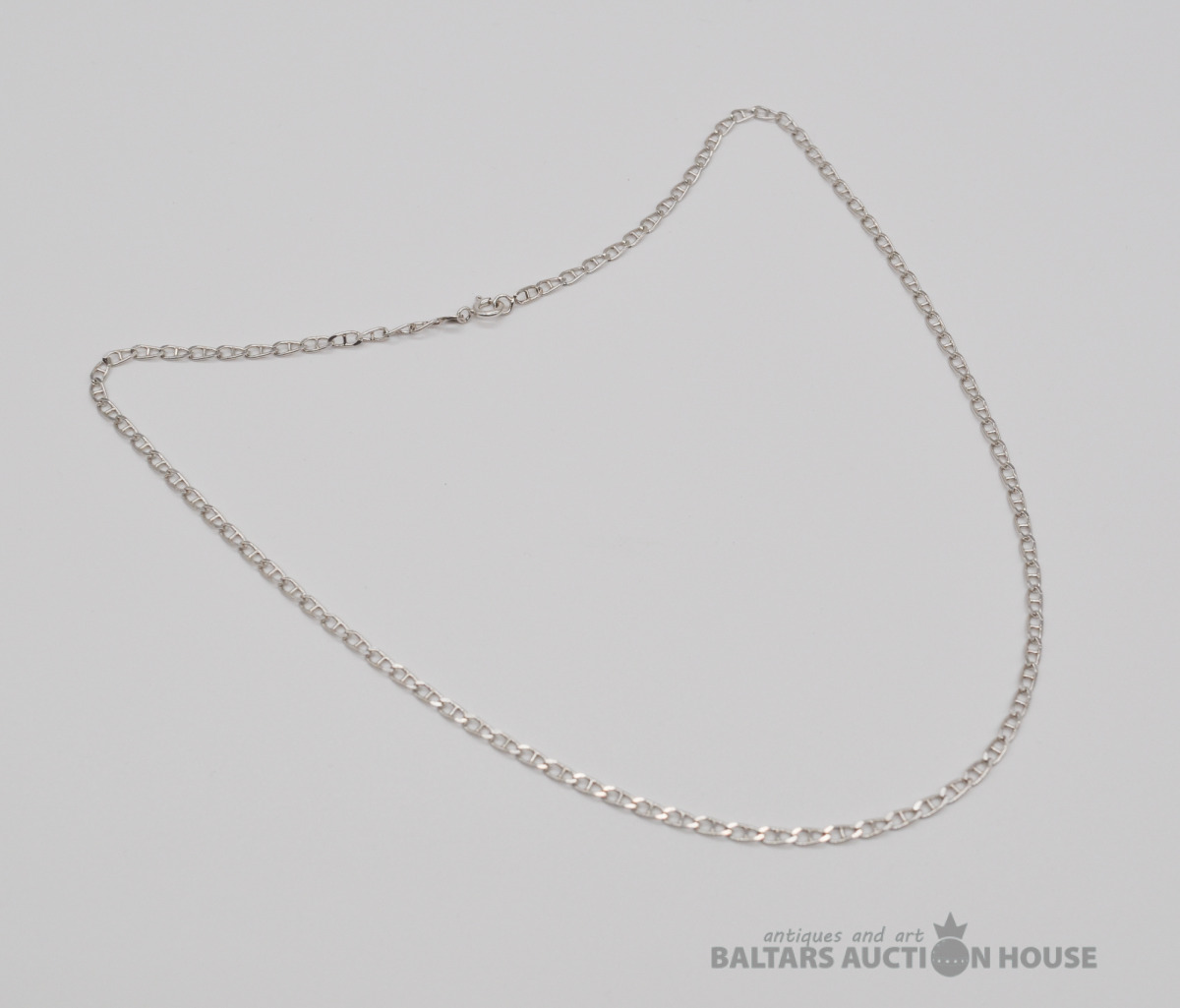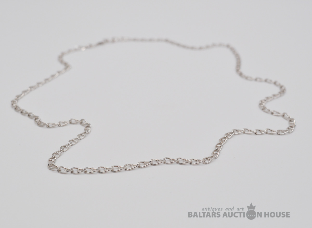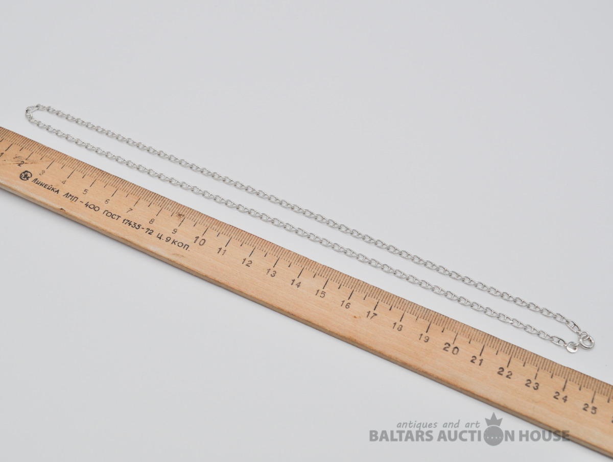 Sudraba ķēdīte. Garums 49.5 cm. Platums 3 mm. Svars 5.5 grami.