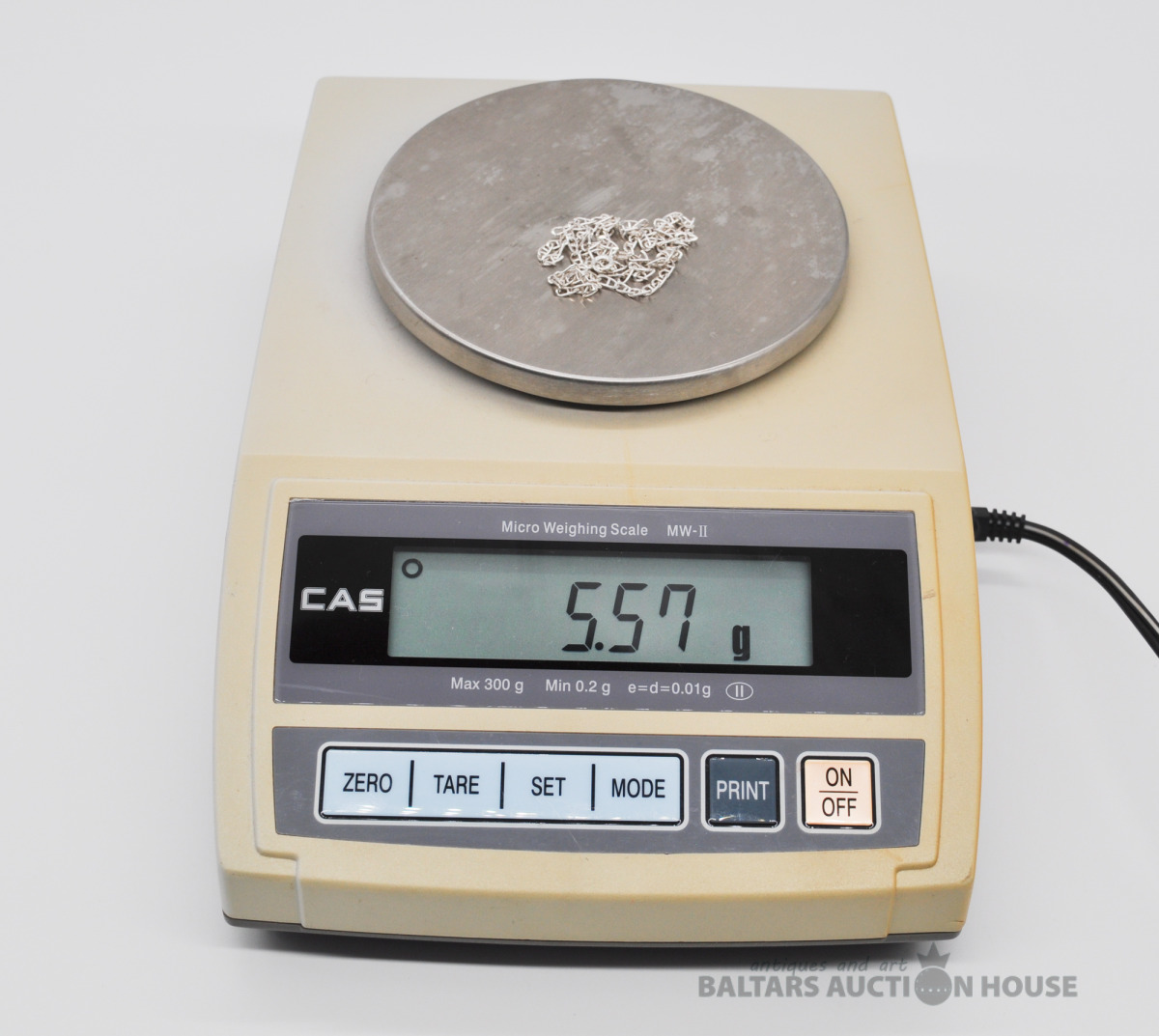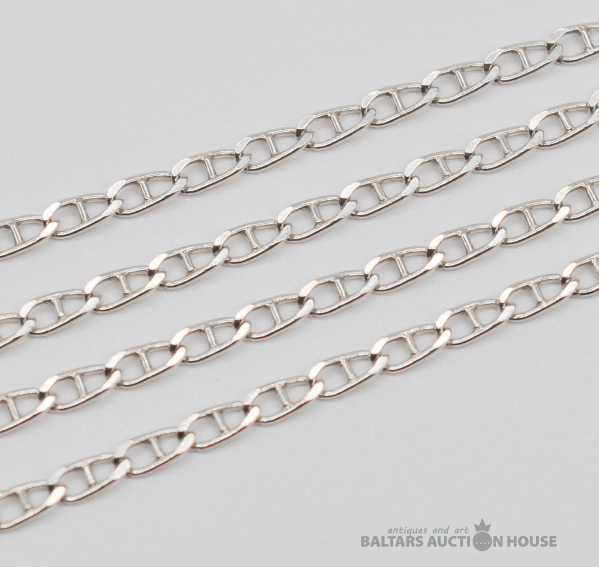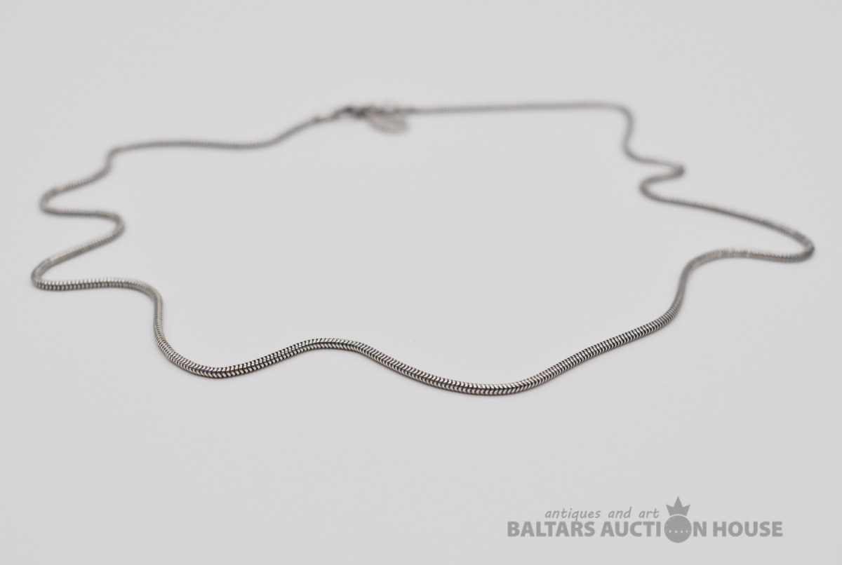 Sudraba ķēdīte. Garums 49.5 cm. Platums 3 mm. Svars 5.5 grami.