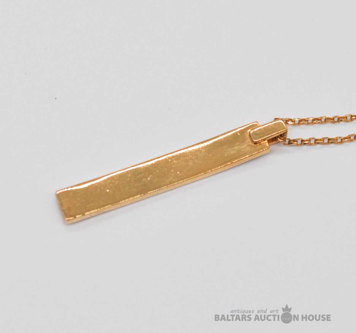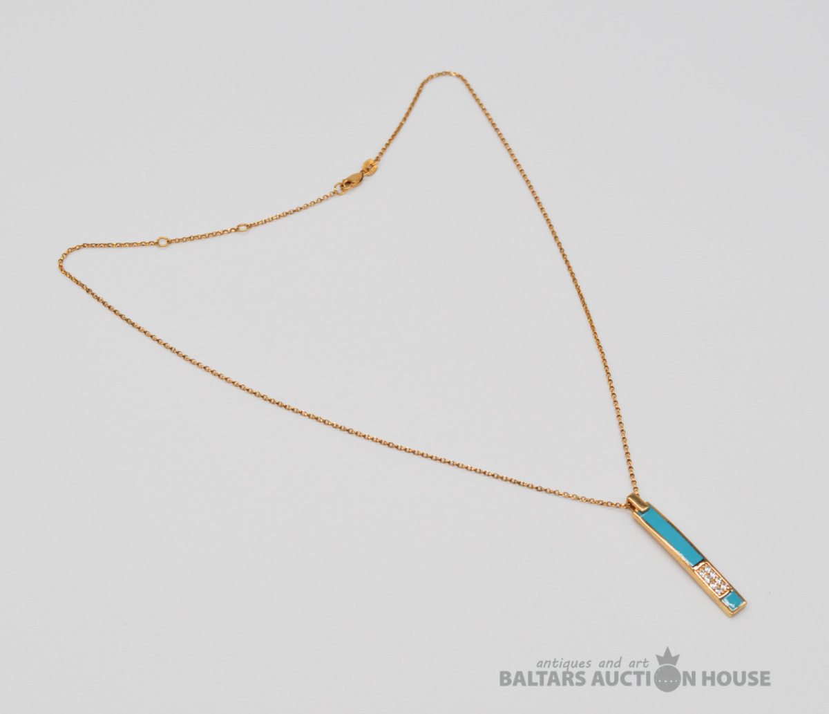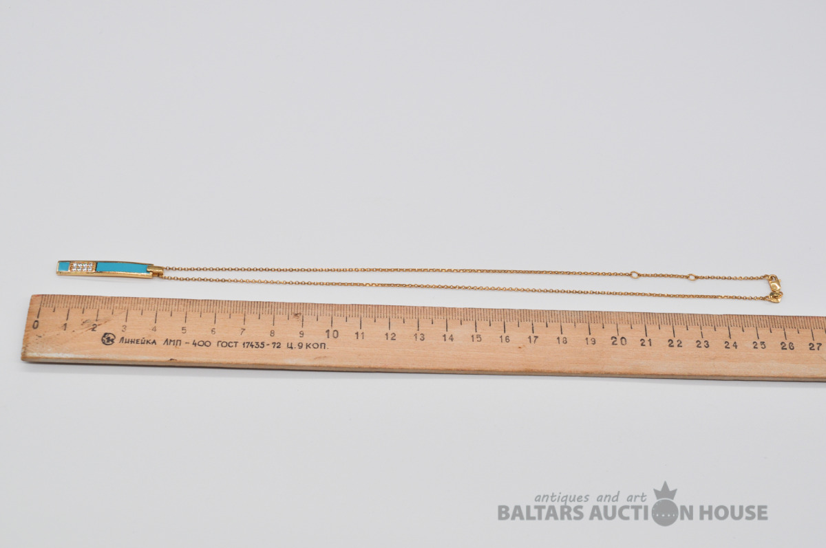 Apzeltīta sudraba kaklarota ar piekariņu. Garums 46 cm. Svars 4.9 grami. Uz piekariņa nav proves.