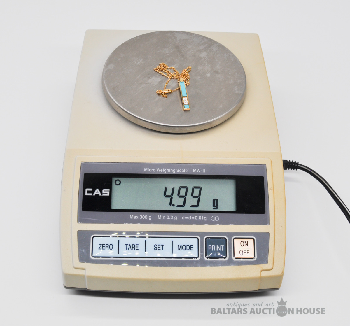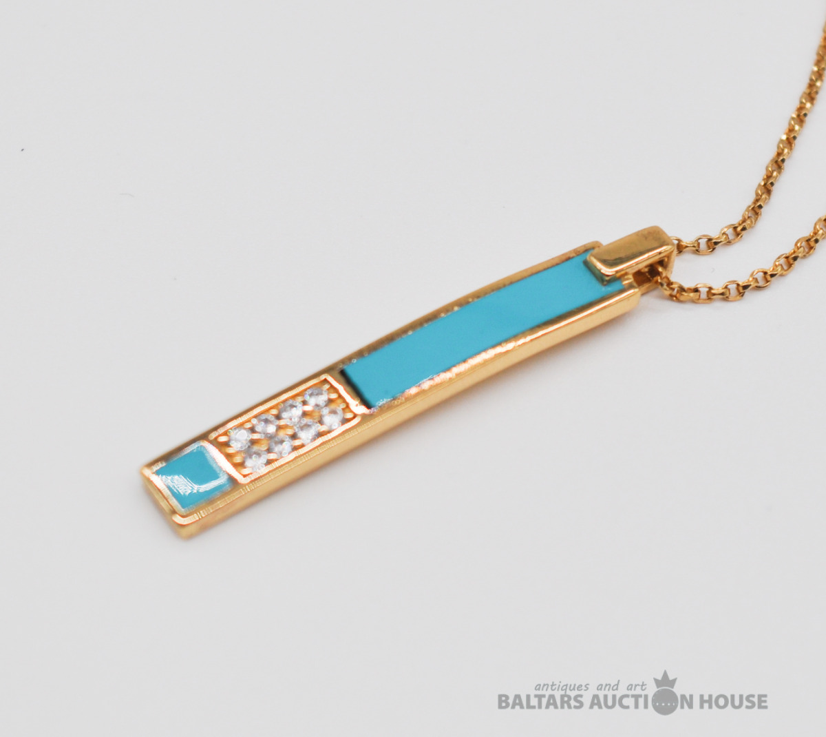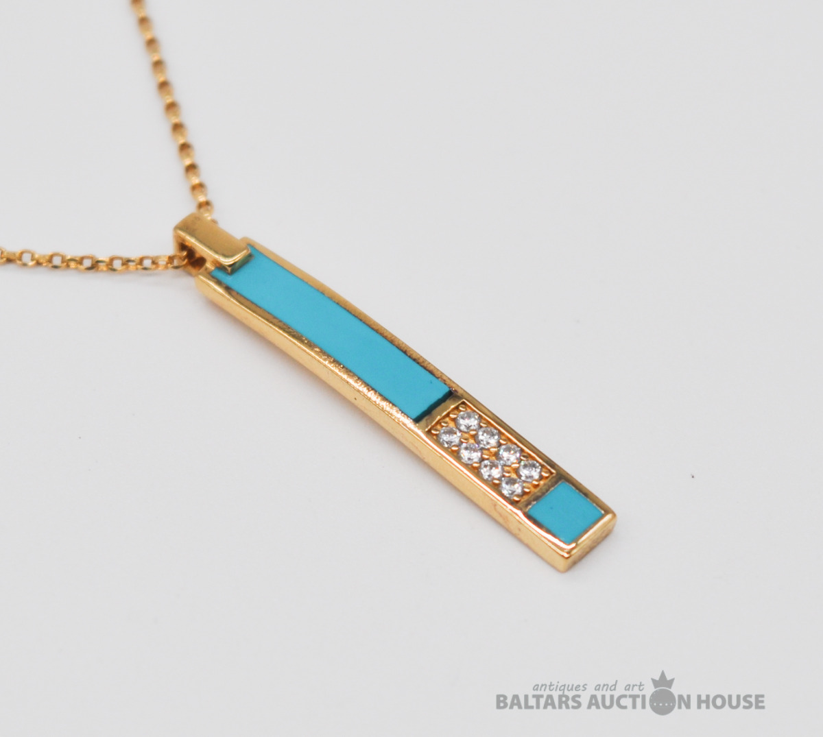 Apzeltīta sudraba kaklarota ar piekariņu. Garums 46 cm. Svars 4.9 grami. Uz piekariņa nav proves.