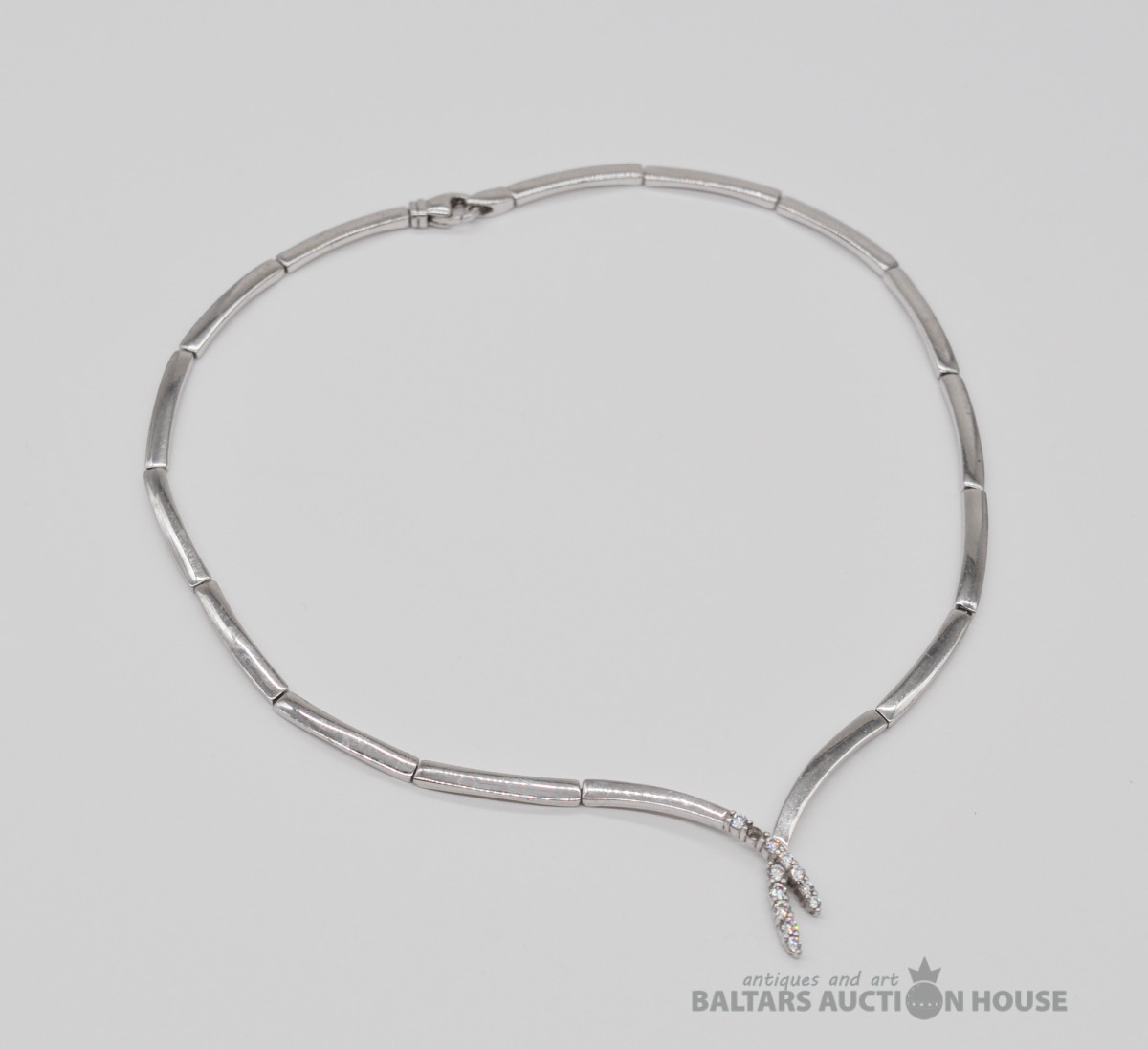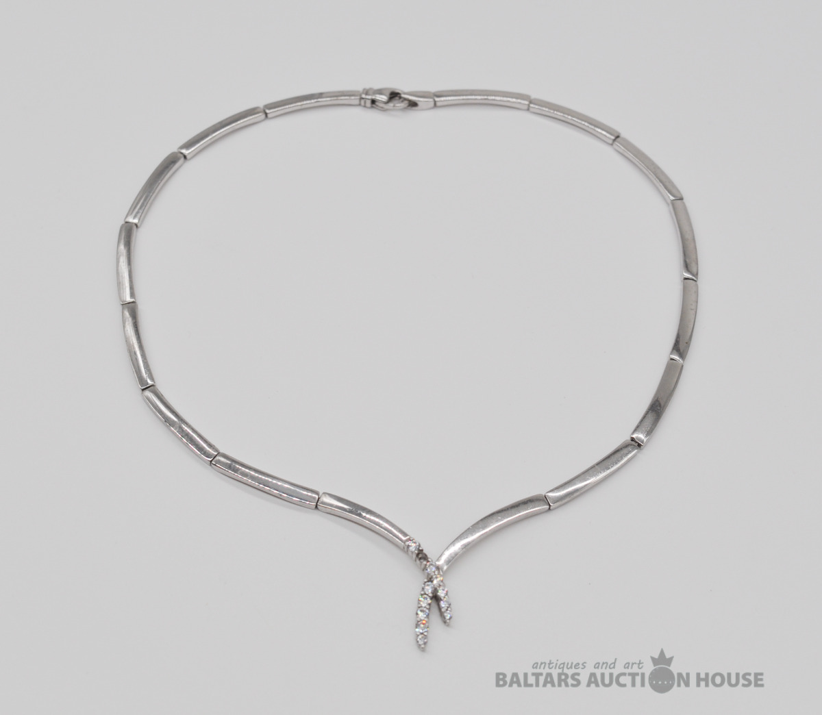 Sudraba kaklarota ar nozaudēto cirkonija kristālu. Garums 43 cm. Svars 37.8 grami.