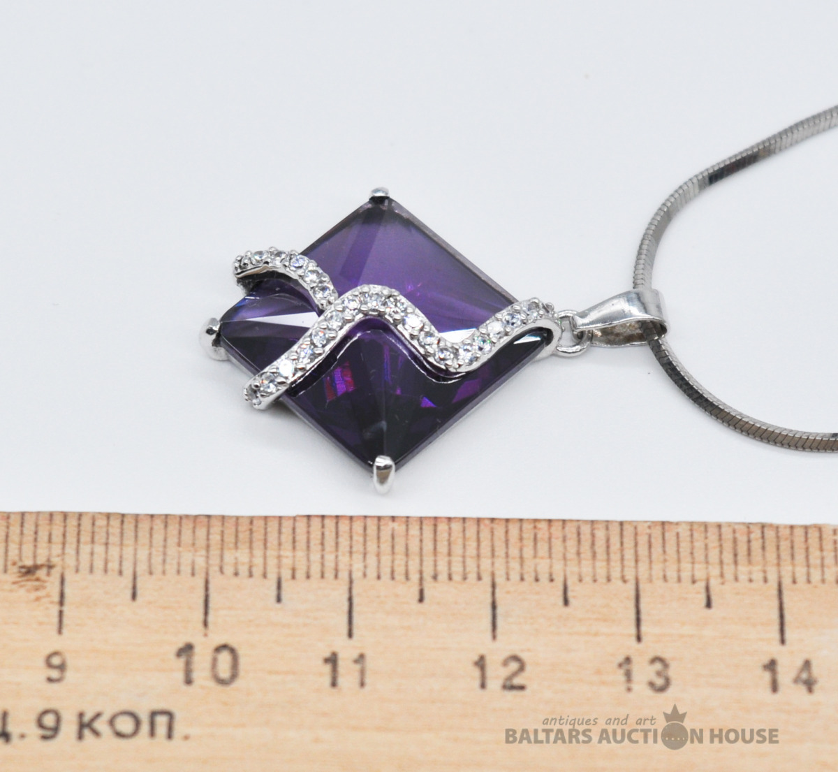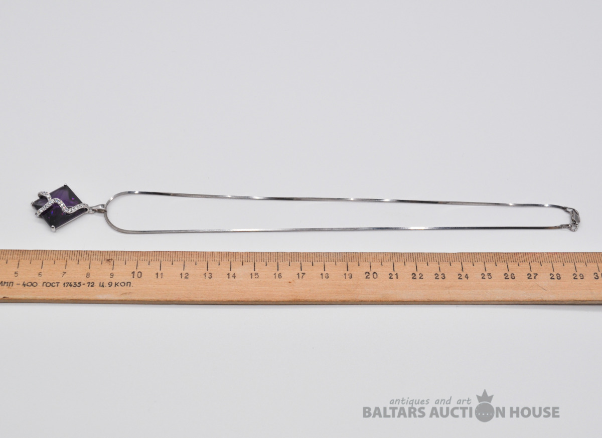 Sudraba piekariņš ar rodija parklājumu. Garums 40 mm. Svars 1.7 grami.