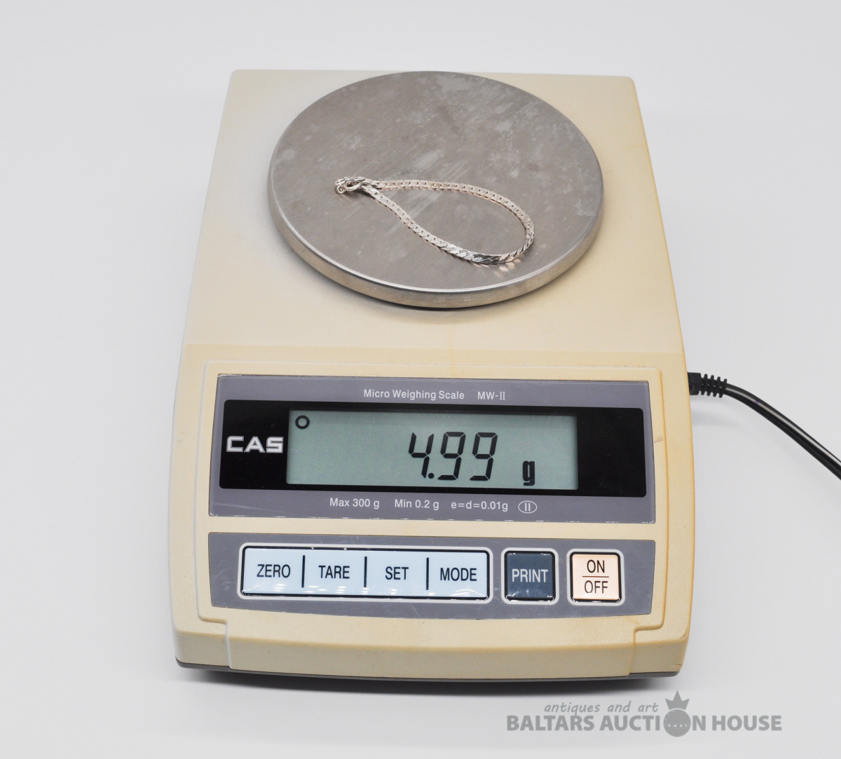 Sudraba aproce. Garums 18.5 cm. Platums 3 mm. Svars 4.9 grami.