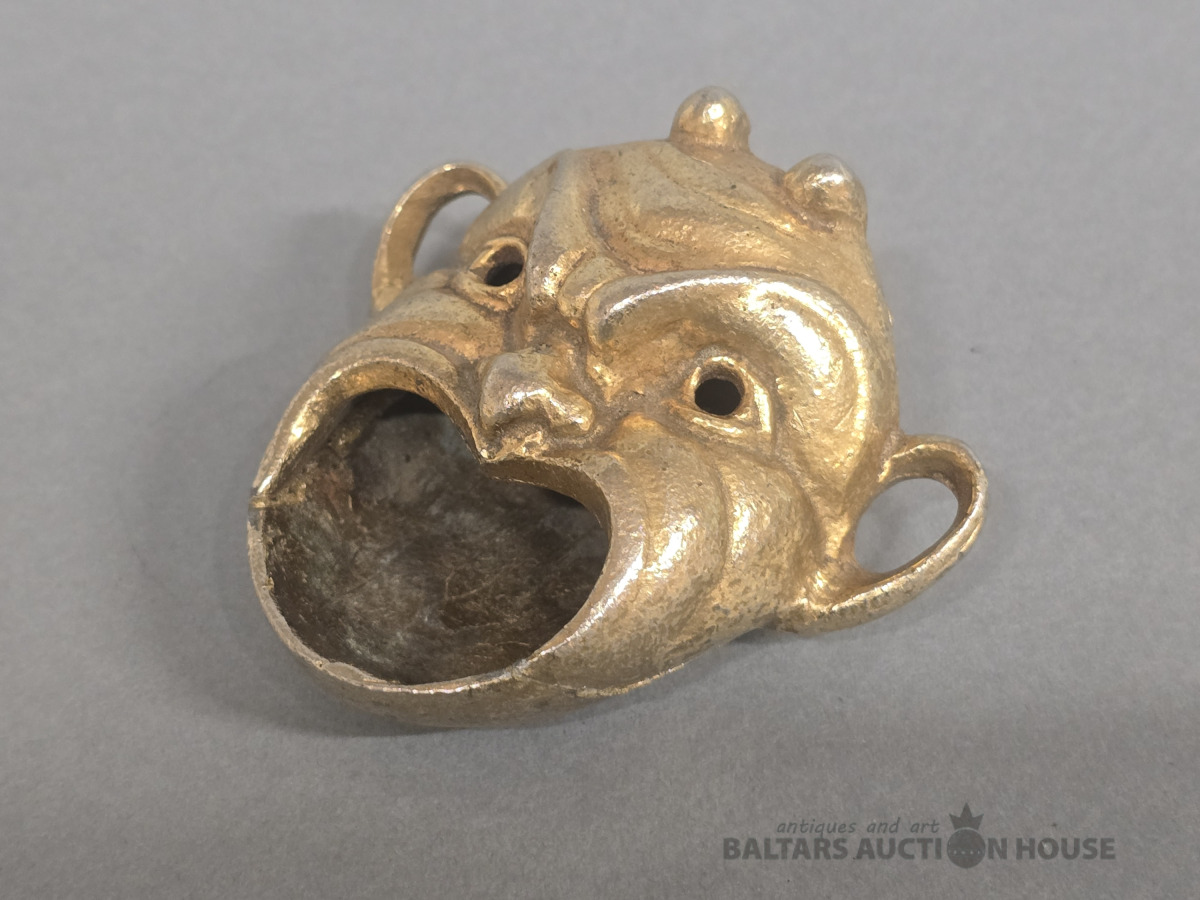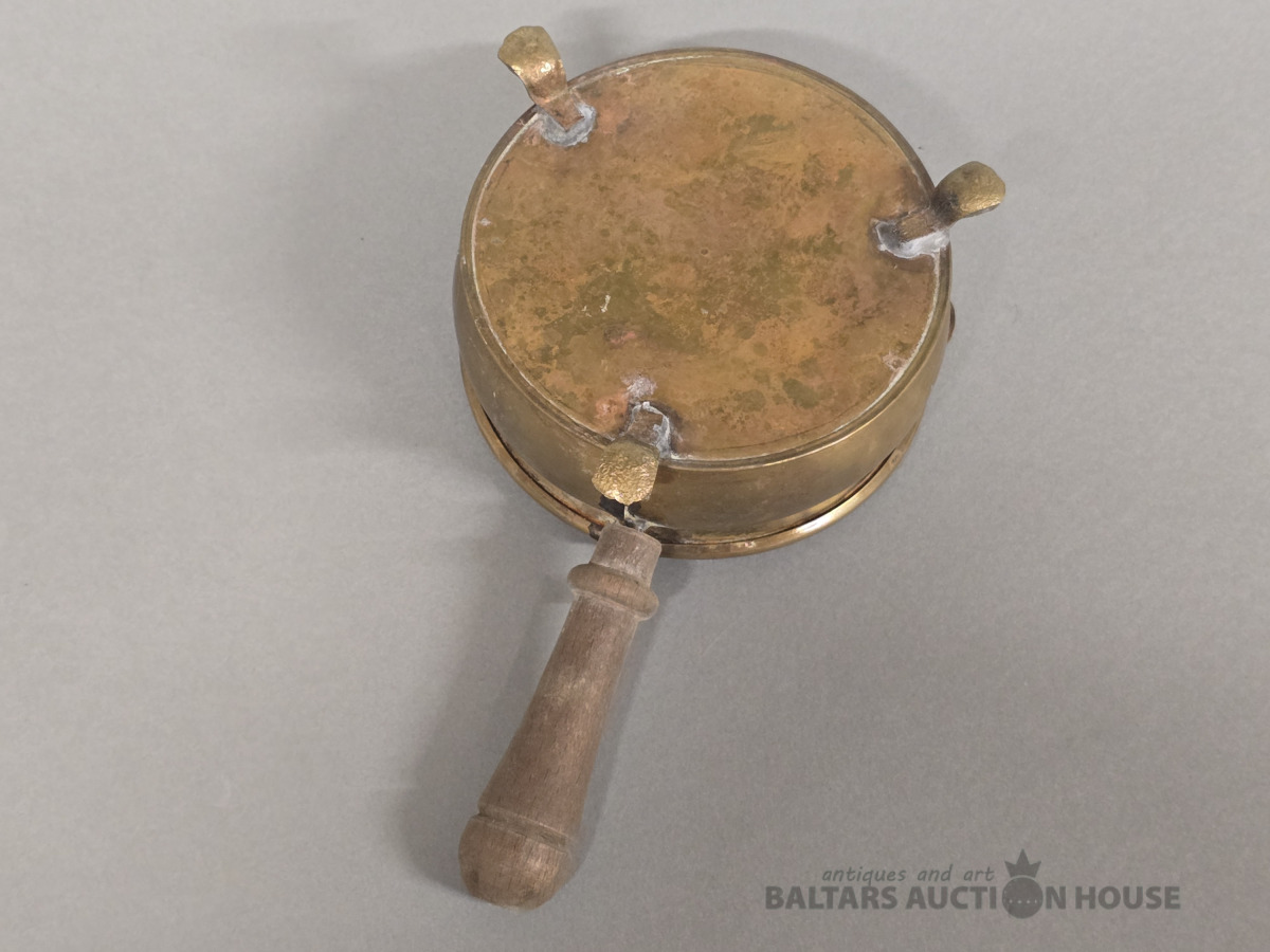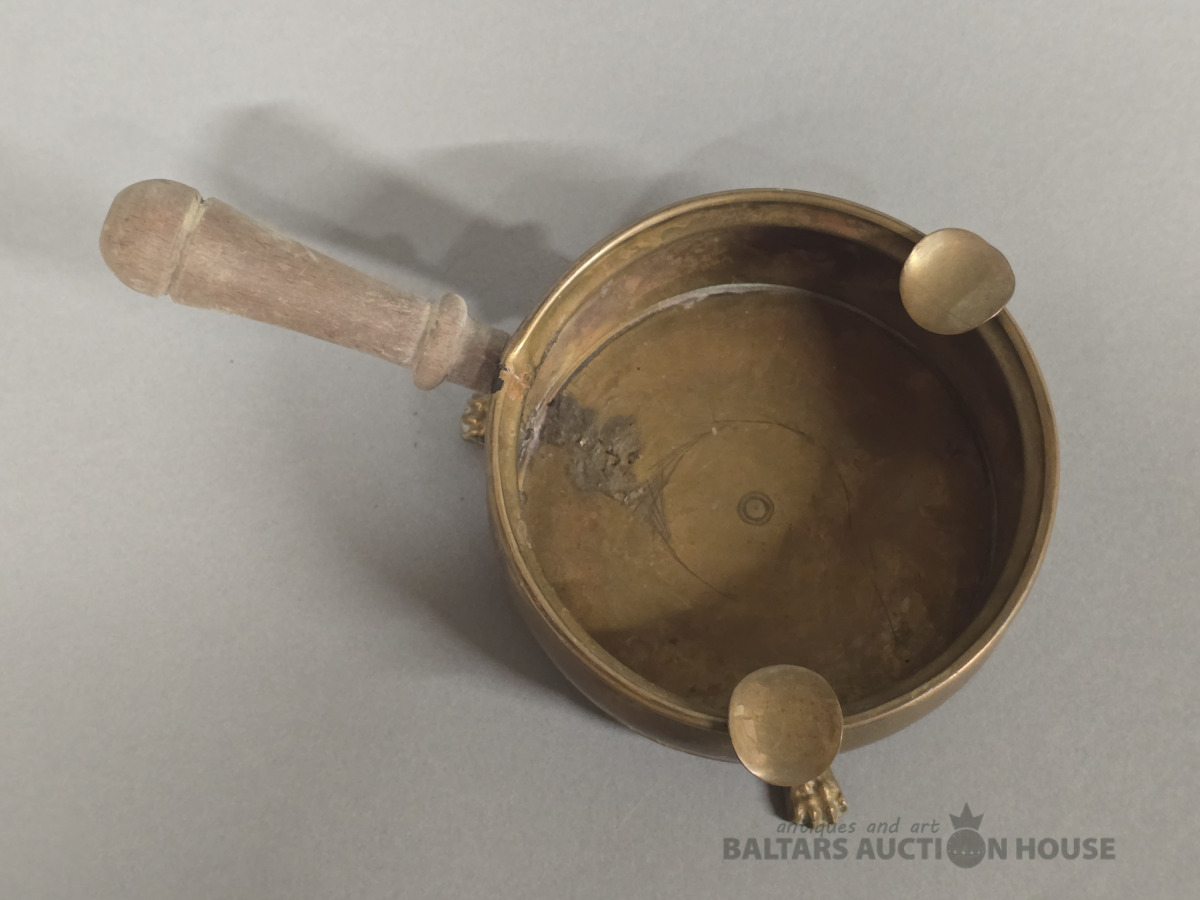 Pelnutrauks ar rokturi. D 11 cm.Bronza ,koks.