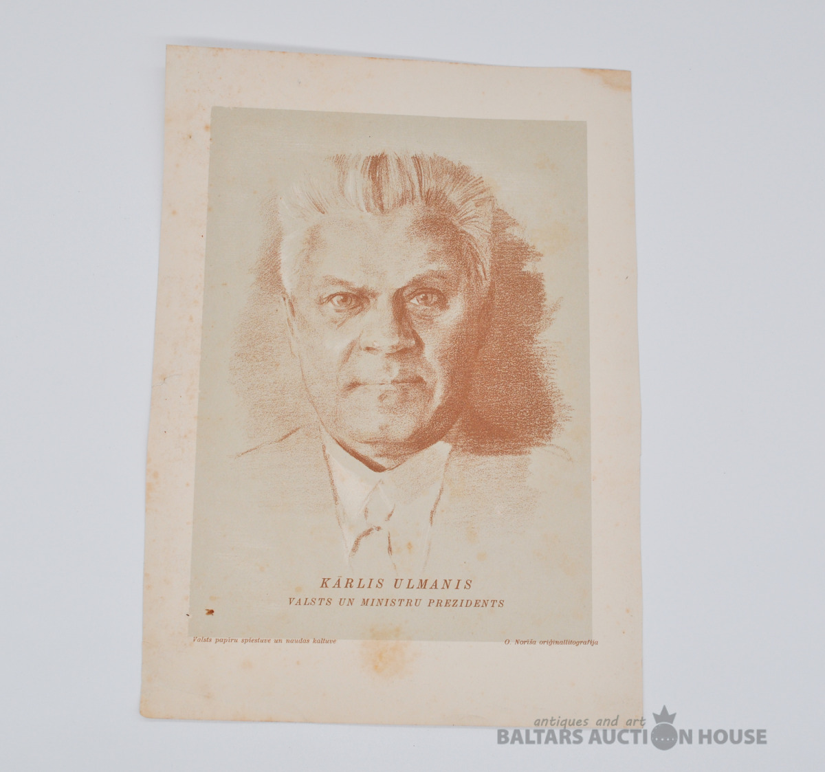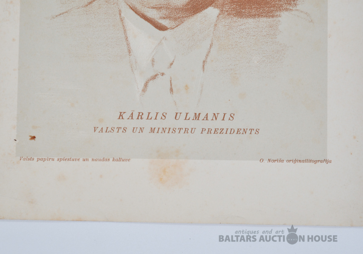 Kārlis Ulmanis. O. Norīša Oriģināllitogrāfija. 18x24.5 cm