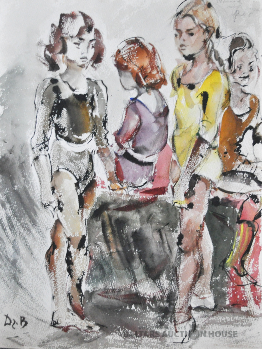 Dzidra Bauma Mūrnieka Studija. Akvarelis "Mākslas vingrotājas" 36x48 cm